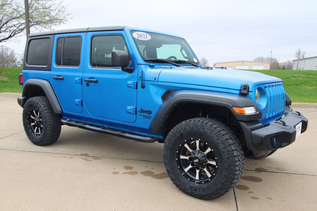 2021 Jeep Wrangler Unlimited Sport S Hydro Blue Pearlcoat 4D Sport Utility 3.0L V6 Turbodiesel 8-Speed Automatic 4WD Unlimited Sport S This vehicle comes well equipped with Quick Order Package 26S Sport S (Automatic Headlamps, Deep Tint Sunscreen Windows, Front 1-Touch Down Power Windows, Leather Wrapped Steering Wheel, Power Heated Mirrors, Remote Keyless Entry, Security Alarm, Speed Sensitive Power Locks, Sport S, Sun Visors w/Illuminated Vanity Mirrors, and Wheels: 17" x 7.5" Tech Silver Aluminum), Technology Group (7.0" Touchscreen Display, Air Conditioning w/Auto Temperature Control, Air Filtering, Apple CarPlay, Cluster 7.0" TFT Color Display, For More Info, Call 800-643-2112, Google Android Auto, GPS Antenna Input, Integrated Center Stack Radio, Radio: Uconnect 4 w/7" Display, SiriusXM Radio Service, SiriusXM Satellite Radio, and USB Host Flip), Trailer Tow & HD Electrical Group (240 Amp Alternator, 7 & 4 Pin Wiring Harness, 700 Amp Maintenance Free Battery, Auxiliary Switches, and Class II Receiver Hitch), 3.45 Rear Axle Ratio, 3.73 Rear Axle Ratio, 4-Wheel Disc Brakes, 8 Speakers, ABS brakes, Air Conditioning, AM/FM radio, Anti-Spin Differential Rear Axle, Aux Battery, Black 3-Piece Hard Top, Brake assist, Cloth Low-Back Bucket Seats, Compass, Delay-off headlights, Driver door bin, Driver vanity mirror, Dual front impact airbags, Dual front side impact airbags, Electronic Stability Control, Freedom Panel Storage Bag, Front anti-roll bar, Front Bucket Seats, Front Center Armrest w/Storage, Front fog lights, Front reading lights, Integrated roll-over protection, Low tire pressure warning, No Soft Top, Non-Lock Fuel Cap w/o Discriminator, Normal Duty Suspension, Occupant sensing airbag, Outside temperature display, ParkView Rear Back-Up Camera, Passenger door bin, Passenger vanity mirror, Power steering, Radio data system, Radio: Uconnect 3 w/5" Display, Rear anti-roll bar, Rear reading lights, Rear Window Defroster, Rear Window Wiper/Washer, Speed control, Split folding rear seat, Steering wheel mounted audio controls, Stop-Start Dual Battery System, Tachometer, Telescoping steering wheel, Tilt steering wheel, Traction control, Trip computer, Variably intermittent wipers, and Wheels: 17" x 7.5" Black Steel Styled.