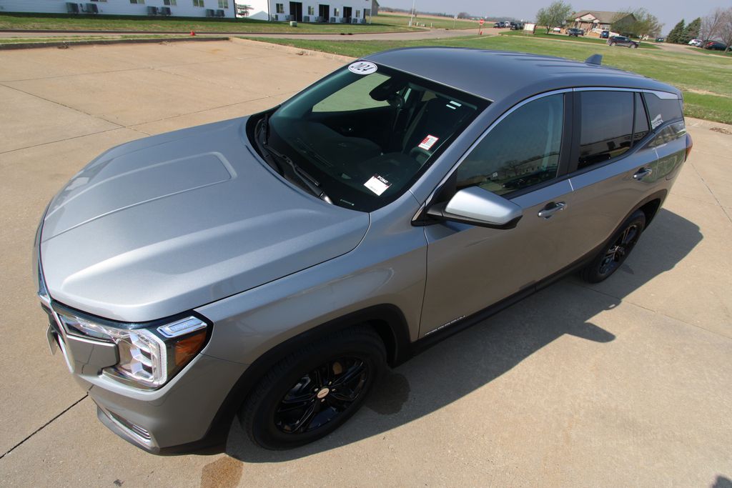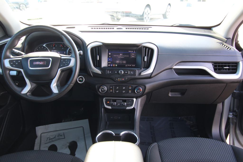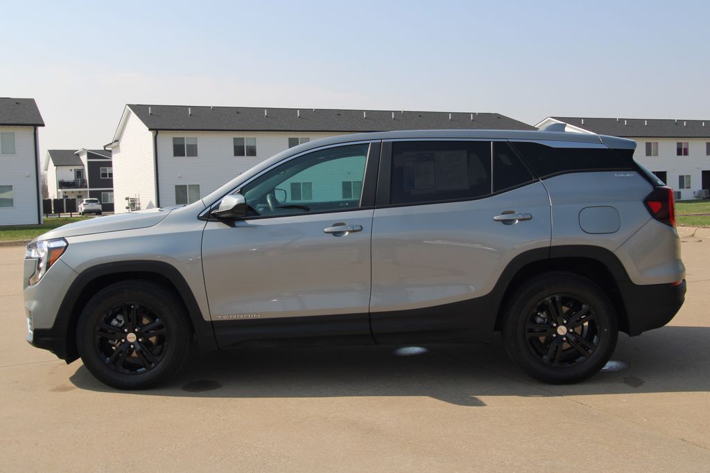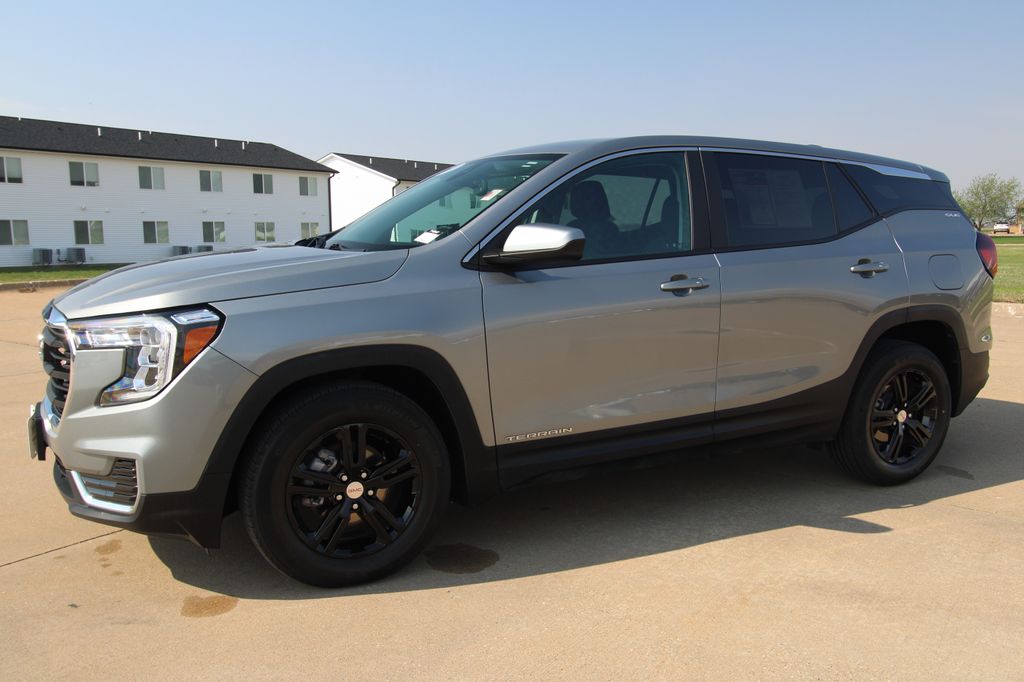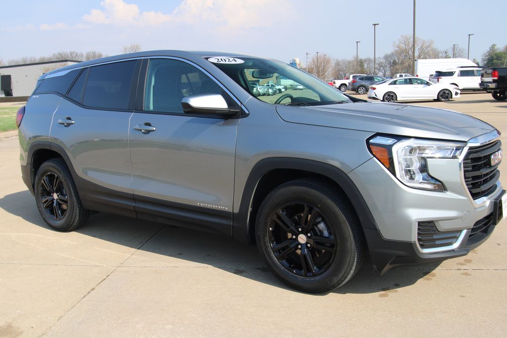 2024 GMC Terrain SLE Sterling Metallic 4D Sport Utility 1.5L DOHC 9-Speed Automatic FWD SLE This vehicle comes well equipped with 2 USB Data Ports w/Auxiliary Input Jack, 3.47 Final Drive Axle Ratio, 4-Way Manual Driver's Seat, 4-Way Manual Front Passenger Seat, 4-Wheel Disc Brakes, 4.2" Multi-Color Driver Information Screen, 6 Speakers, 6-Speaker Audio System Feature, ABS brakes, Air Conditioning, Alloy wheels, AM/FM radio: SiriusXM, Auto High-beam Headlights, Auto-dimming Rear-View mirror, Automatic temperature control, Bluetooth® For Phone, Brake assist, Bumpers: body-color, Compass, Delay-off headlights, Driver door bin, Driver vanity mirror, Dual front impact airbags, Dual front side impact airbags, Electronic Stability Control, Emergency communication system: OnStar and GMC connected services capable, Four wheel independent suspension, Front anti-roll bar, Front Bucket Seats, Front Center Armrest, Front reading lights, Fully automatic headlights, Heated door mirrors, Illuminated entry, Low tire pressure warning, Occupant sensing airbag, Outside temperature display, Overhead airbag, Overhead console, Panic alarm, Passenger door bin, Passenger vanity mirror, Power door mirrors, Power steering, Power windows, Premium Cloth Seat Trim, Radio data system, Radio: GMC Infotainment Audio System w/7" Display, Rear anti-roll bar, Rear seat center armrest, Rear window defroster, Rear window wiper, Remote keyless entry, Security system, SiriusXM, Speed control, Speed-sensing steering, Split folding rear seat, Spoiler, Steering wheel mounted audio controls, Tachometer, Telescoping steering wheel, Tilt steering wheel, Traction control, Trip computer, Variably intermittent wipers, Wheels: 17" x 7" Silver Painted Aluminum, and Wireless Apple CarPlay/Wireless Android Auto.
