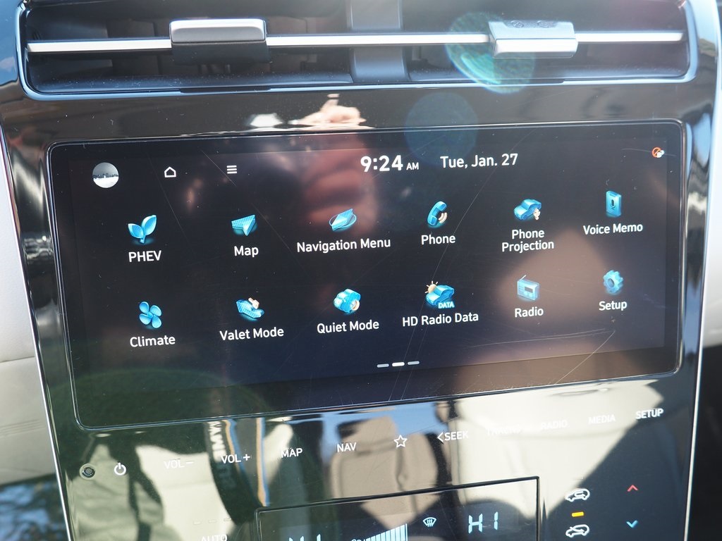 2024 Hyundai Tucson Plug-In Hybrid Limited Amazon Gray 4D Sport Utility I4 6-Speed Automatic AWD Limited This vehicle comes well equipped with Option Group 01, 3.32 Axle Ratio, 4-Wheel Disc Brakes, 8 Speakers, ABS brakes, Air Conditioning, Alloy wheels, AM/FM radio: SiriusXM, Apple CarPlay & Android Auto, Auto High-beam Headlights, Auto-dimming Rear-View mirror, Automatic temperature control, Brake assist, Bumpers: body-color, Delay-off headlights, Driver door bin, Driver vanity mirror, Dual front impact airbags, Dual front side impact airbags, Electronic Stability Control, Emergency communication system, Exterior Parking Camera Rear, Four wheel independent suspension, Front anti-roll bar, Front Bucket Seats, Front Center Armrest, Front dual zone A/C, Front reading lights, Fully automatic headlights, Garage door transmitter: HomeLink, Heated & Ventilated Front Bucket Seats, Heated door mirrors, Heated front seats, Heated rear seats, Heated steering wheel, Illuminated entry, Leather Seat Trim, Low tire pressure warning, Memory seat, Navigation System, Occupant sensing airbag, Outside temperature display, Overhead airbag, Overhead console, Panic alarm, Passenger door bin, Passenger vanity mirror, Power door mirrors, Power driver seat, Power Liftgate, Power moonroof, Power passenger seat, Power steering, Power windows, Radio data system, Radio: Bose Premium w/AM/FM/HD Audio System, Rain sensing wipers, Rear anti-roll bar, Rear reading lights, Rear seat center armrest, Rear side impact airbag, Rear window defroster, Rear window wiper, Remote keyless entry, Security system, Speed control, Split folding rear seat, Spoiler, Steering wheel mounted audio controls, Tachometer, Telescoping steering wheel, Tilt steering wheel, Traction control, Trip computer, Turn signal indicator mirrors, Variably intermittent wipers, Ventilated front seats, and Wheels: 19" x 7.5J Alloy.