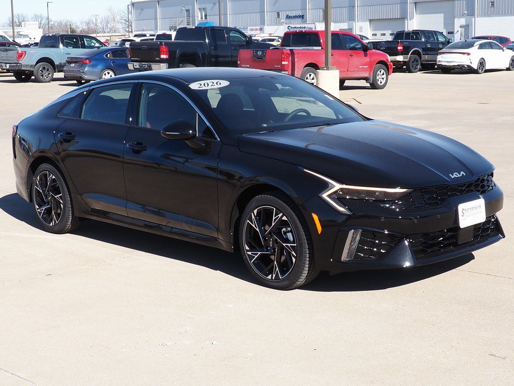 Not all customers qualify for all rebates, see dealer for details. Price includes: $1000 - KFA Dealer Choice Program: $1000 discount and 5.25% APR for 36 months. $30.08 per $1000 financed. Available to well qualified buyers who finance through Kia Finance America. 506. Exp. 03/31/2026 Aurora Black Pearl 2026 Kia I4 K5 GT-Line Priced below KBB Fair Purchase Price! 24/33 City/Highway MPG