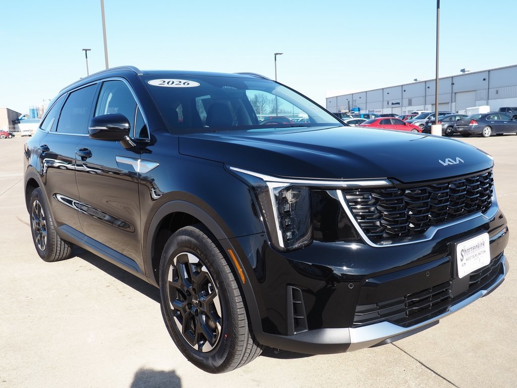 Not all customers qualify for all rebates, see dealer for details. Price includes: $2000 - Kia Customer Cash. Exp. 03/02/2026 Ebony Black 2026 Kia 2.5L I4 DGI DOHC 16V LEV3-SULEV30 191hp Sorento S 23/31 City/Highway MPG