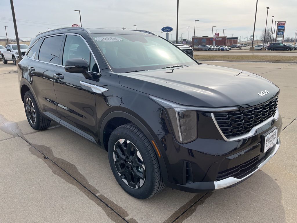 Ebony Black 2026 Kia 2.5L I4 DGI DOHC 16V LEV3-SULEV30 191hp Sorento S Priced below KBB Fair Purchase Price! 23/28 City/Highway MPG