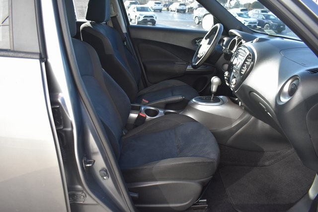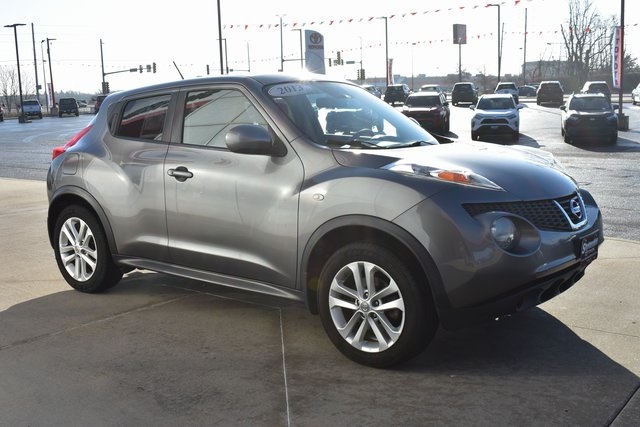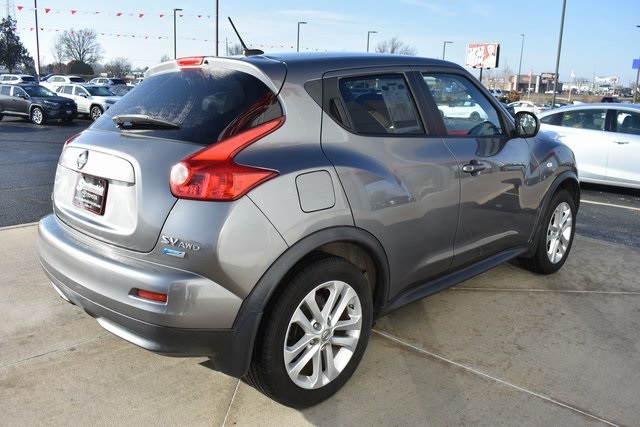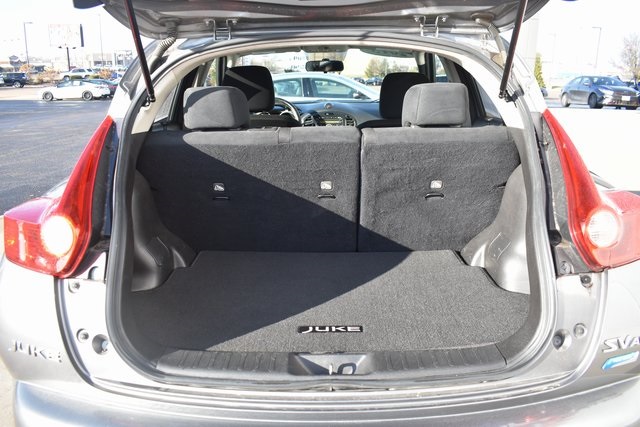 2013 Nissan Juke Gun Metallic SV 1.6L I4 DOHC 16V CVT with Xtronic AWD Sunroof/Moonroof, Local Trade, Juke SV, CVT with Xtronic, AWD, Gun Metallic, Black Cloth, 6 Speakers, ABS brakes, Air Conditioning, Alloy wheels, AM/FM radio: SiriusXM, Automatic temperature control, Bumpers: body-color, CD player, Driver door bin, Driver vanity mirror, Front Bucket Seats, Front reading lights, Illuminated entry, Leather Shift Knob, Leather steering wheel, Low tire pressure warning, Occupant sensing airbag, Outside temperature display, Passenger door bin, Passenger vanity mirror, Power door mirrors, Power moonroof, Power steering, Power windows, Radio data system, Rear window defroster, Rear window wiper, Security system, Speed control, Split folding rear seat, Steering wheel mounted audio controls, Tilt steering wheel, Traction control.