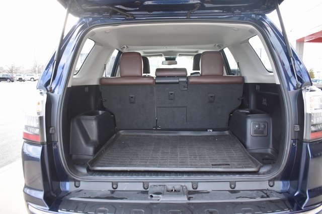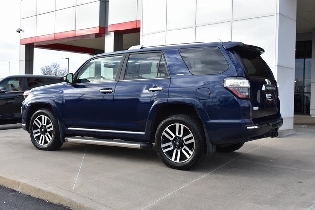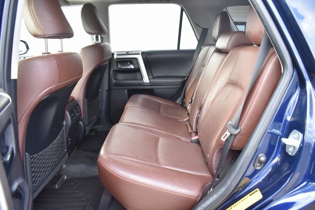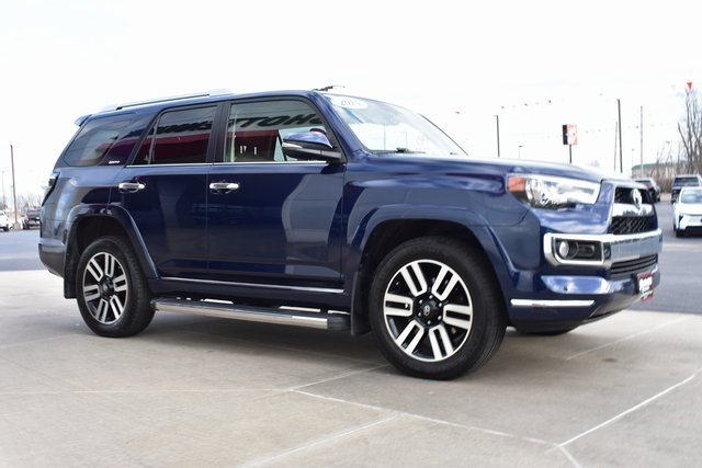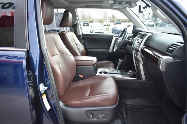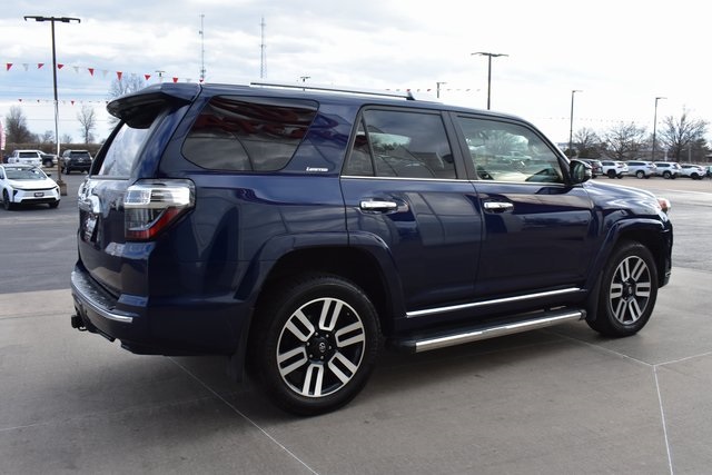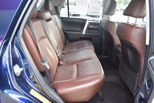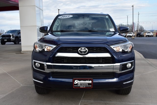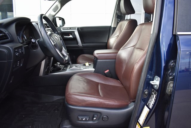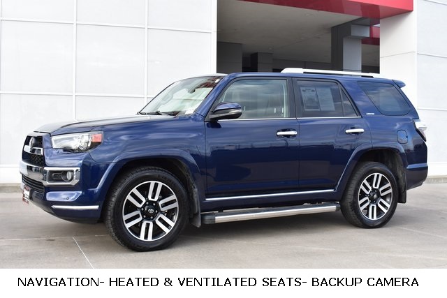 2015 Toyota 4Runner Blue Limited 4.0L V6 SMPI DOHC 5-Speed Automatic with Overdrive 4WD Fixed Running Boards, Towing/Camper Pkg, Navigation, Sunroof/Moonroof, Leather, Backup Camera, 4Runner Limited, 5-Speed Automatic with Overdrive, 4WD, Blue, 15 Speakers, ABS brakes, Air Conditioning, Alloy wheels, AM/FM radio: SiriusXM, Automatic temperature control, Bumpers: body-color, CD player, Compass, Driver door bin, Driver vanity mirror, Exterior Parking Camera Rear, Front Bucket Seats, Front Center Armrest, Front dual zone A/C, Front reading lights, Fully automatic headlights, Garage Door Opener, Heated door mirrors, Heated front seats, Heated/Ventilated Front Bucket Seats, Illuminated entry, Leather Shift Knob, Low tire pressure warning, Memory seat, Outside temperature display, Overhead console, Panic alarm, Passenger door bin, Passenger vanity mirror, Power door mirrors, Power driver seat, Power moonroof, Power passenger seat, Power steering, Power Tilt & Slide Moonroof w/Sunshade, Power windows, Rear seat center armrest, Rear window defroster, Rear window wiper, Speed control, Split folding rear seat, Spoiler, Steering wheel mounted audio controls, Telescoping steering wheel, Tilt steering wheel, Traction control, Turn signal indicator mirrors, Ventilated front seats.