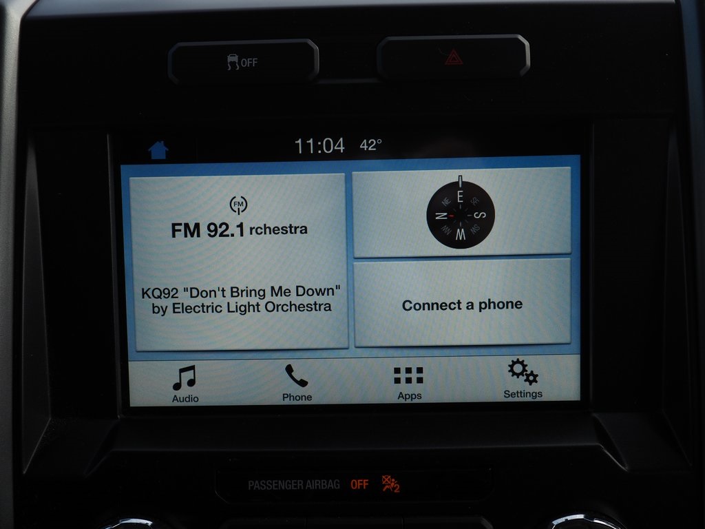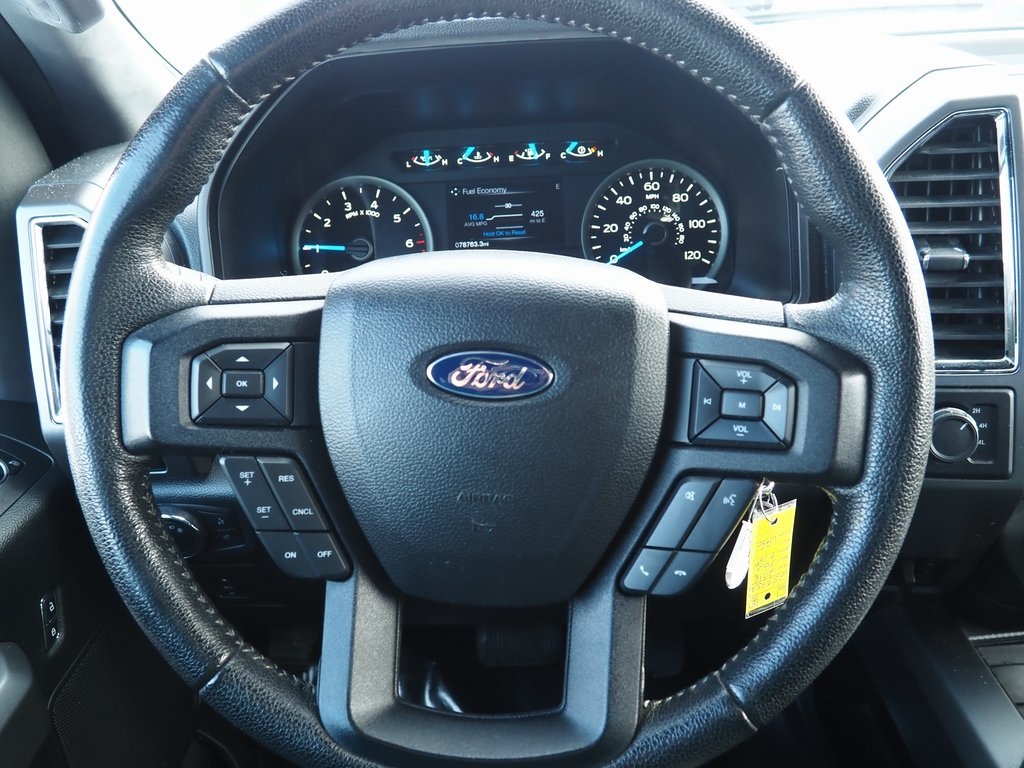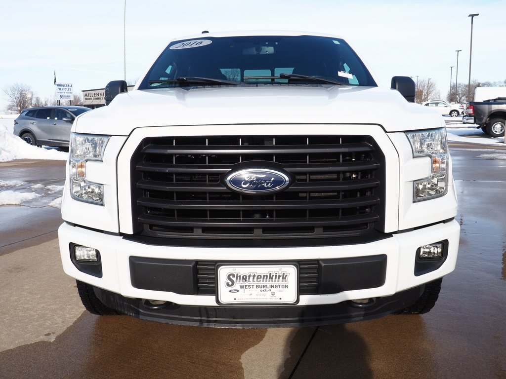 2016 Ford F-150 XLT Oxford White 4D SuperCrew 5.0L V8 FFV 6-Speed Automatic Electronic 4WD XLT This vehicle comes well equipped with Equipment Group 302A Luxury (SYNC Voice Recognition Communications), XLT Sport Appearance Package (Accent-Color Step Bars, Black Billet Style Grille w/Body-Color Surround, Body-Color Door & Tailgate Handles, Body-Color Front & Rear Bumpers, Box Side Decal, Single-Tip Chrome Exhaust, and Wheels: 18" 6-Spoke Machined-Aluminum), 4-Wheel Disc Brakes, 6 Speakers, ABS brakes, Air Conditioning, All-Weather Rubber Floor Mats, Alloy wheels, AM/FM radio, Brake assist, Bumpers: chrome, CD player, Compass, Delay-off headlights, Driver door bin, Driver vanity mirror, Dual front impact airbags, Dual front side impact airbags, Electronic Stability Control, Extended Range 36 Gallon Fuel Tank, Front anti-roll bar, Front Center Armrest w/Storage, Front fog lights, Front License Plate Bracket, Front reading lights, Front wheel independent suspension, Fully automatic headlights, Illuminated entry, Integrated Trailer Brake Controller, LED Side-Mirror Spotlights, Low tire pressure warning, Occupant sensing airbag, Outside temperature display, Overhead airbag, Panic alarm, Passenger door bin, Passenger vanity mirror, Power door mirrors, Power steering, Power windows, Radio data system, Radio: AM/FM Stereo/Single-CD Player, Rear reading lights, Rear step bumper, Remote keyless entry, Security system, Speed control, Speed-sensing steering, Split folding rear seat, Spray-In Bedliner (Pre-Installed), Steering wheel mounted audio controls, Tachometer, Telescoping steering wheel, Tilt steering wheel, Traction control, Variably intermittent wipers, Voltmeter, Wheel Well Liner (Pre-Installed), and Wheels: 17" Silver Painted Aluminum.