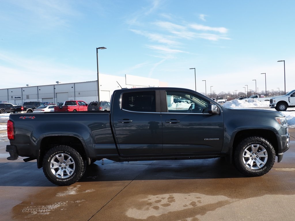 2019 Chevrolet Colorado LT Shadow Gray Metallic 4D Crew Cab V6 8-Speed Automatic 4WD LT This vehicle comes well equipped with Heavy-Duty Trailering Package, LT Convenience Package (EZ-Lift & Lower Tailgate, Front Fog Lamps, Manual Rear-Sliding Window, Rear-Window Electric Defogger, and Remote Vehicle Starter System), Preferred Equipment Group 4LT, 3.42 Rear Axle Ratio, 4-Way Power Front Passenger Seat Adjuster, 4-Wheel Disc Brakes, 6 Speakers, 6-Speaker Audio System Feature, ABS brakes, Air Conditioning, All-Weather Floor Liner (LPO), Alloy wheels, AM/FM radio: SiriusXM, Apple CarPlay, Automatic Locking Rear Differential, Bumpers: body-color, Cloth Seat Trim, Compass, Delay-off headlights, Driver 6-Way Power Seat Adjuster, Driver door bin, Driver vanity mirror, Dual front impact airbags, Dual front side impact airbags, Electronic Stability Control, Exterior Parking Camera Rear, Front & Rear Splash Guards, Front anti-roll bar, Front Bucket Seats, Front Center Armrest, Front reading lights, Front wheel independent suspension, Fully automatic headlights, HD Radio, Heated Driver & Front Passenger Seats, Heated Steering Wheel (DISC), Illuminated entry, Low tire pressure warning, Occupant sensing airbag, Outside Heated Power-Adjustable Body-Color Mirrors, Outside temperature display, Overhead airbag, Overhead console, Panic alarm, Passenger door bin, Passenger vanity mirror, Power door mirrors, Power Driver Lumbar Control Seat Adjuster, Power driver seat, Power Passenger Lumbar Control Seat Adjuster, Power steering, Power windows, Premium audio system: Chevrolet Infotainment System, Radio data system, Radio: Chevrolet Infotainment 3 Plus System, Rear reading lights, Rear seat center armrest, Rear step bumper, Remote keyless entry, Security system, SiriusXM Radio, Speed control, Speed-sensing steering, Steering wheel mounted audio controls, Tachometer, Telescoping steering wheel, Tilt steering wheel, Traction control, Trip computer, Variably intermittent wipers, Wheel Locks, and Wheels: 17" x 8" Blade Silver Metallic Cast Alloy.
