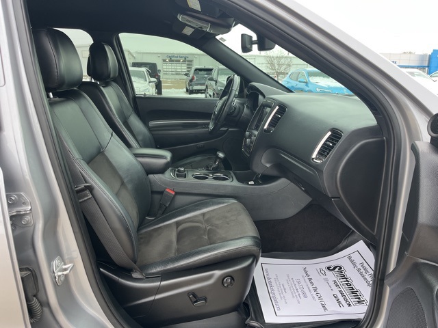Navigation, Leather, Heated seats, Heated steering wheel, XM SIRIUS Radio, Push button start, Local trade, Non-smoker, Custom black out wheels, Black out wheels, Shottenkirk Certified, Fully Serviced and Detailed, Bluetooth, Rear Back Up Camera, Three rows of seating, Power driver's seat, Power passenger seat, Memory seats, Tow package, Safety Package, Convenience Package, Premium wheels and tires, Free Carfax history report, Steering Wheel Controls, Alloy Wheels, Leather Interior, Lane Monitor, Black Top PKG, Durango R/T, 4D Sport Utility, HEMI 5.7L V8 Multi Displacement VVT, 8-Speed Automatic, AWD, Billet Metallic Clearcoat, Black w/Leather Suede Bucket Seats or Cloth Low-Back Bucket Seats or Leather Trimmed Bucket Seats, 3.09 Rear Axle Ratio, 3rd row seats: split-bench, 4-Wheel Disc Brakes, 7 & 4 Pin Wiring Harness, 9 Speakers, ABS brakes, Air Conditioning, Alloy wheels, AM/FM radio: SiriusXM, Anti-whiplash front head restraints, Apple CarPlay/Android Auto, Audio memory, Auto High-beam Headlights, Auto-dimming door mirrors, Auto-dimming Rear-View mirror, Auto-leveling suspension, Automatic temperature control, Brake assist, Bumpers: body-color, Class IV Receiver Hitch, Compass, Delay-off headlights, Driver door bin, Driver vanity mirror, Dual front impact airbags, Dual front side impact airbags, Electronic stabiliy control, Emergency communication system: Roadside Assistance/9-1-1 Call, Four wheel independent suspension, Front anti-roll bar, Front Bucket Seats, Front Center Armrest w/Storage, Front dual zone A/C, Front fog lights, Front reading lights, Fully automatic headlights, Garage door transmitter, Heated door mirrors, Heated front seats, Heated rear seats, Heated steering wheel, Heavy-Duty Engine Cooling, High-Intensity Discharge Headlights, Illuminated entry, Knee airbag, Leather Suede Bucket Seats, Low tire pressure warning, Memory seat, Navigation System, Occupant sensing airbag, Outside temperature display, Overhead airbag, Overhead console, Panic alarm, ParkView Rear Back-Up Camera, Passenger door bin, Passenger vanity mirror, Power door mirrors, Power driver seat, Power Liftgate, Power passenger seat, Power steering, Power windows, Quick Order Package 22S, Radio data system, Radio: Uconnect 4C Nav w/8.4" Display, Rain sensing wipers, Rear air conditioning, Rear anti-roll bar, Rear Load Leveling Suspension, Rear reading lights, Rear seat center armrest, Rear window defroster, Rear window wiper, Remote keyless entry, Security system, Speed control, Speed-Sensitive Wipers, Split folding rear seat, Spoiler, Steering wheel mounted audio controls, Tachometer, Telescoping steering wheel, Tilt steering wheel, Traction control, Trailer Brake Control, Trailer Tow Group IV, Trip computer, Turn signal indicator mirrors, Variably intermittent wipers, Wheels: 20" x 8.0" Satin Carbon - Design 1.