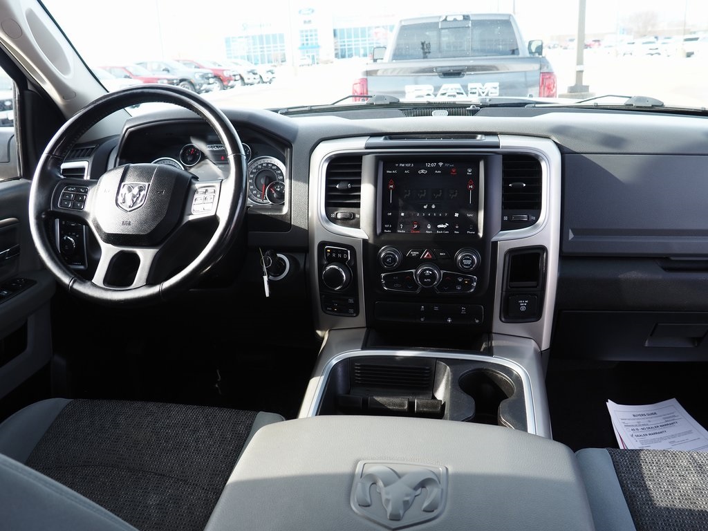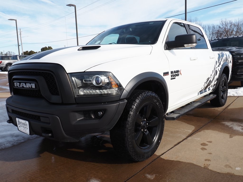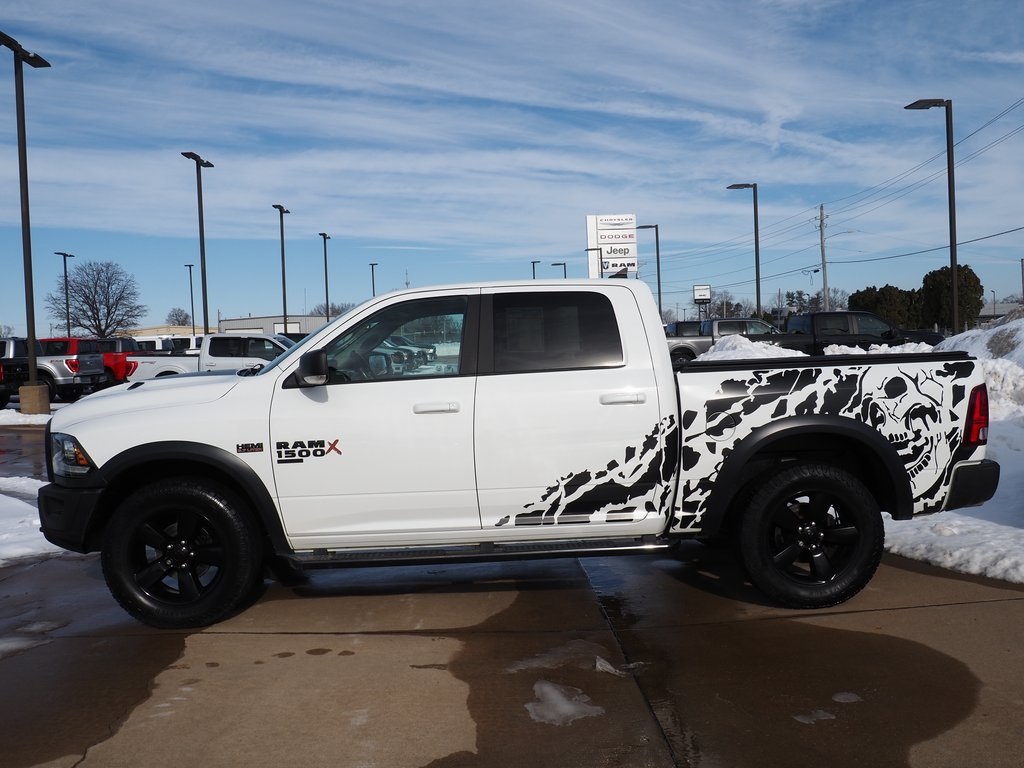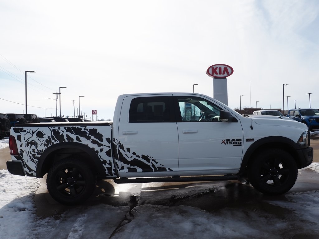 2019 Ram 1500 Classic Warlock Bright White Clearcoat 4D Crew Cab HEMI 5.7L V8 Multi Displacement VVT 8-Speed Automatic 4WD Warlock This vehicle comes well equipped with 3.21 Rear Axle Ratio, 4-Wheel Disc Brakes, 40/20/40 Split Bench Seat, 6 Speakers, ABS brakes, Active Grille Shutters, Air Conditioning, Alloy wheels, AM/FM radio: SiriusXM, Black Exterior Mirrors, Brake assist, Bumpers: chrome, Center Hub, Compass, Delay-off headlights, Driver door bin, Dual front impact airbags, Dual front side impact airbags, Electronic Shift, Electronic Stability Control, Exterior Mirrors w/Heating Element, Front anti-roll bar, Front Armrest w/3 Cupholders, Front Center Armrest w/Storage, Front reading lights, Front wheel independent suspension, Fully automatic headlights, GPS Antenna Input, Heated door mirrors, Illuminated entry, Integrated Voice Command w/Bluetooth, Low tire pressure warning, Occupant sensing airbag, Outside temperature display, Overhead airbag, Overhead console, Panic alarm, ParkView Rear Back-Up Camera, Passenger door bin, Passenger vanity mirror, Power door mirrors, Power steering, Power windows, Radio data system, Rear anti-roll bar, Rear seat center armrest, Rear step bumper, Remote keyless entry, Remote USB Port - Charge Only, Speed control, Storage Tray, Tachometer, Tilt steering wheel, Tip Start, Traction control, Trip computer, Variably intermittent wipers, and Voltmeter.