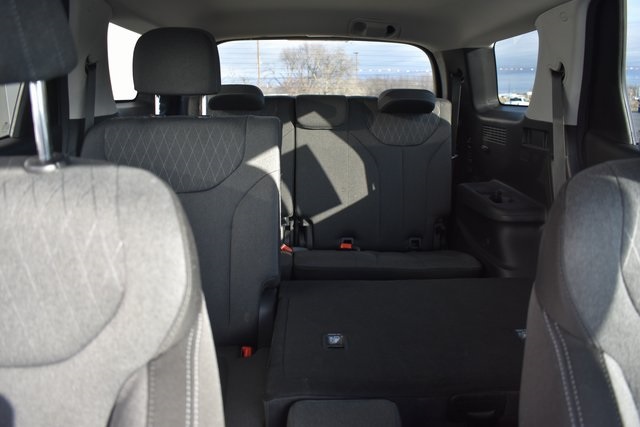 2020 Hyundai Palisade Hyper White SE V6 8-Speed Automatic with SHIFTRONIC AWD Local Trade, Backup Camera, Palisade SE, 8-Speed Automatic with SHIFTRONIC, AWD, Hyper White, Black/Gray w/Stain Resistant Cloth Seat Trim, 3rd row seats: split-bench, 6 Speakers, ABS brakes, Air Conditioning, Alloy wheels, AM/FM radio, Bumpers: body-color, Driver door bin, Driver vanity mirror, Front Bucket Seats, Front Center Armrest, Front reading lights, Fully automatic headlights, Heated door mirrors, Illuminated entry, Low tire pressure warning, Occupant sensing airbag, Outside temperature display, Overhead console, Passenger door bin, Passenger vanity mirror, Power door mirrors, Power steering, Power windows, Radio data system, Radio: AM/FM/MP3 Display Audio, Rear air conditioning, Rear seat center armrest, Rear window defroster, Rear window wiper, Reclining 3rd row seat, Remote keyless entry, Security system, Speed control, Split folding rear seat, Spoiler, Stain Resistant Cloth Seat Trim, Steering wheel mounted audio controls, Telescoping steering wheel, Tilt steering wheel, Traction control.