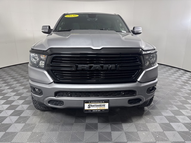 Recent Arrival! Billet Silver Metallic Clearcoat 2020 Ram 1500 Big Horn Night Edition 4D Crew Cab HEMI 5.7L V8 Multi Displacement VVT 4WD 8-Speed Automatic 115V Auxiliary Power Outlet, 115V Auxiliary Rear Power Outlet, 2 USB Full Function/Charge Only Media Hub, 2nd Row In Floor Storage Bins, 3 Rear Seat Head Restraints, 4 Way Front Headrests, 400W Inverter, ABS brakes, Air Conditioning ATC w/Dual Zone Control, Alloy wheels, Anti-Spin Differential Rear Axle, Auto-Dimming Exterior Driver Mirror, Auto-Dimming Rear-View Mirror, Big Horn IP Badge, Big Horn Level 2 Equipment Group, Black Exterior Truck Badging, Black Headlamp Bezels, Black Interior Accents, Black Premium Power Mirrors, Body Color Door Handles, Body Color Exterior Mirrors, Body Color Front Bumper, Body Color Premium Power Mirrors, Body Color Rear Bumper w/Step Pads, Bucket Seats, Class IV Receiver Hitch, Compass, Dampened Tailgate, Deluxe Cloth Bucket Seats, Dual Exhaust w/Black Tips, Electronic Stability Control, Exterior Mirrors Courtesy Lamps, Exterior Mirrors w/Memory, Foam Bottle Insert (Door Trim Panel), Front Seat Back Map Pockets, Full Length Floor Console, Glove Box Lamp, Grille Surround 1 Black Texture 2 Black, Heated door mirrors, Heated Front Seats, Heated Steering Wheel, Illuminated entry, Low tire pressure warning, Manual Adjust 4-Way Front Passenger Seat, Night Edition, ParkSense Front/Rear Park Assist w/Stop, ParkView Rear Back-Up Camera, Power 4-Way Driver Lumbar Adjust, Power 8-Way Driver Seat, Power Adjustable Pedals, Power-Folding Mirrors, Radio: Uconnect 4 w/8.4" Display, Rear 60/40 Folding Seat, Rear Dome w/On/Off Switch Lamp, Rear Power Sliding Window, Rear Window Defroster, Remote keyless entry, Security Alarm, SiriusXM Satellite Radio, Sun Visors w/Illuminated Vanity Mirrors, Traction control, Universal Garage Door Opener, Wheels: 20" x 9.0" Premium Paint/Polished. Clean CARFAX.