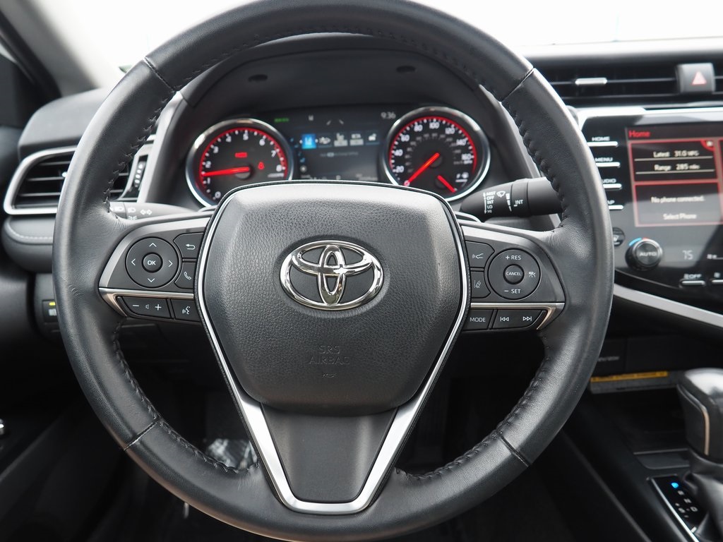 2020 Toyota Camry XSE Super White 4D Sedan 2.5L I4 DOHC 16V 8-Speed Automatic FWD XSE This vehicle comes well equipped with 4-Wheel Disc Brakes, 6 Speakers, ABS brakes, Air Conditioning, Alloy wheels, AM/FM radio: SiriusXM, Apple CarPlay/Android Auto, Auto High-beam Headlights, Auto-dimming Rear-View mirror, Automatic temperature control, Brake assist, Bumpers: body-color, CD player, Compass, Delay-off headlights, Driver door bin, Driver vanity mirror, Dual front impact airbags, Dual front side impact airbags, Electronic Stability Control, Emergency communication system: Safety Connect with 1-year trial, Exterior Parking Camera Rear, Four wheel independent suspension, Front anti-roll bar, Front Bucket Seats, Front Center Armrest, Front dual zone A/C, Front reading lights, Fully automatic headlights, Garage door transmitter: HomeLink, Heated door mirrors, Heated front seats, Illuminated entry, Knee airbag, Leather Seat Trim, Leather Shift Knob, Low tire pressure warning, Multi-Stage Heated Front Bucket Seats, Occupant sensing airbag, Outside temperature display, Overhead airbag, Overhead console, Panic alarm, Passenger door bin, Passenger vanity mirror, Power door mirrors, Power driver seat, Power passenger seat, Power steering, Power windows, Radio data system, Radio: AM/FM/HD Audio Plus, Rear anti-roll bar, Rear reading lights, Rear seat center armrest, Rear side impact airbag, Rear window defroster, Remote keyless entry, Security system, Speed control, Speed-sensing steering, Split folding rear seat, Spoiler, Sport steering wheel, Steering wheel mounted audio controls, Tachometer, Telescoping steering wheel, Tilt steering wheel, Traction control, Trip computer, Turn signal indicator mirrors, Variably intermittent wipers, and Wheels: 8.0J x 19" Black Machined-Finish Alloy.
