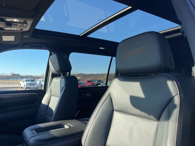 CARFAX One-Owner. Navigation, Moonroof, Leather, Heated and cooled seats, Heated seats, Heated steering wheel, XM SIRIUS Radio, Push button start, Local trade, Shottenkirk Certified, Fully Serviced and Detailed, Bluetooth, Rear Back Up Camera, Three rows of seating, Power driver's seat, Power passenger seat, Tow package, Apple Car Play, Onstar, Free Carfax history report, Steering Wheel Controls, Alloy Wheels, Leather Interior, Power Sunroof/Moonroof, Suburban High Country, 4D Sport Utility, EcoTec3 6.2L V8, 10-Speed Automatic with Overdrive, 4WD, Iridescent Pearl Tricoat, Jet Black w/Perforated Leather Seating Surfaces, 10 Speakers, 15" Diagonal Multi-Color Head-Up Display, 1st & 2nd Row Color-Keyed Carpeted Floor Mats, 2-Speed Active Electronic AutoTrac Transfer Case, 3.23 Rear Axle Ratio, 3rd Row 60/40 Power-Folding Split-Bench, 3rd row seats: split-bench, 4-Wheel Disc Brakes, ABS brakes, Adaptive Cruise Control, Adaptive suspension, Advanced Trailering Package, Air Conditioning, Air Ride Adaptive Suspension, Alloy wheels, AM/FM radio: SiriusXM with 360L, Apple CarPlay/Android Auto, Auto High-beam Headlights, Auto-dimming door mirrors, Auto-dimming Rear-View mirror, Auto-leveling suspension, Automatic Stop/Start, Automatic temperature control, Bose 10-Speaker Surround w/CenterPoint, Brake assist, Bright Front & Rear Door Sill Plates, Bumpers: body-color, Chrome Door Handles w/Body-Color Strip, Color-Keyed Carpeting Floor Covering, Compass, Delay-off headlights, Driver & Front Outboard Passenger Airbags, Driver door bin, Driver vanity mirror, Dual Exhaust System, Dual front impact airbags, Dual front side impact airbags, Dual-Pane Power Panoramic Sunroof, Electronic stabiliy control, Emergency communication system: OnStar and Chevrolet connected services capable, Enhanced Automatic Emergency Braking, Enhanced Driver Information Center, Extra Capacity Cooling System, Floor Console, Floor Console w/Storage Area, Four wheel independent suspension, Front & Rear Park Assist, Front anti-roll bar, Front Bucket Seats, Front Center Armrest, Front dual zone A/C, Front reading lights, Fully automatic headlights, Hands-Free Rear Power Programmable Liftgate, HD Surround Vision, Heads-Up Display, Heated & Ventilated Driver & Front Passenger Seats, Heated 2nd Row Outboard Seats, Heated door mirrors, Heated Driver & Front Passenger Seats, Heated front seats, Heated rear seats, Heated Steering Wheel, Heated steering wheel, High Country Deluxe, Hill Descent Control, Hitch Guidance w/Hitch View, Illuminated entry, Infotainment Display, Inside Rearview Auto-Dimming Rear Camera Mirror, Integrated Trailer Brake Controller, Lane Change Alert w/Side Blind Zone Alert, Leather steering wheel, Leather-Wrapped Steering Wheel, LED Daytime Running Lamps, License Plate Front Mounting Package, Low tire pressure warning, Magnetic Ride Control Suspension, Max Trailering Package, Memory seat, Memory Settings, Navigation System, Occupant sensing airbag, Outside Heated Power-Adjustable Mirrors, Outside temperature display, Overhead airbag, Overhead console, Panic alarm, Passenger door bin, Passenger vanity mirror, Perforated Leather Seating Surfaces, Power door mirrors, Power driver seat, Power Liftgate, Power passenger seat, Power Release 2nd Row Bucket Seats, Power steering, Power Tilt & Telescopic Steering Column, Power windows, Power-Retractable Assist Steps, Preferred Equipment Group 3LZ, Premium audio system: Chevrolet Infotainment 3 Premium, Radio: Chevrolet Infotainment 3 Premium System, Rain sensing wipers, Rear air conditioning, Rear anti-roll bar, Rear Camera Mirror Washer, Rear Cross Traffic Alert, Rear Pedestrian Alert, Rear reading lights, Rear window defroster, Rear window wiper, Remote keyless entry, Remote Start, Roof rack: rails only, Safety Alert Seat, Security system, SiriusXM Radio w/360L, Smart Trailer Integration Indicator, Speed control, Speed-sensing steering, Split folding rear seat, Spoiler, Start/Stop System Disable Button, Steering