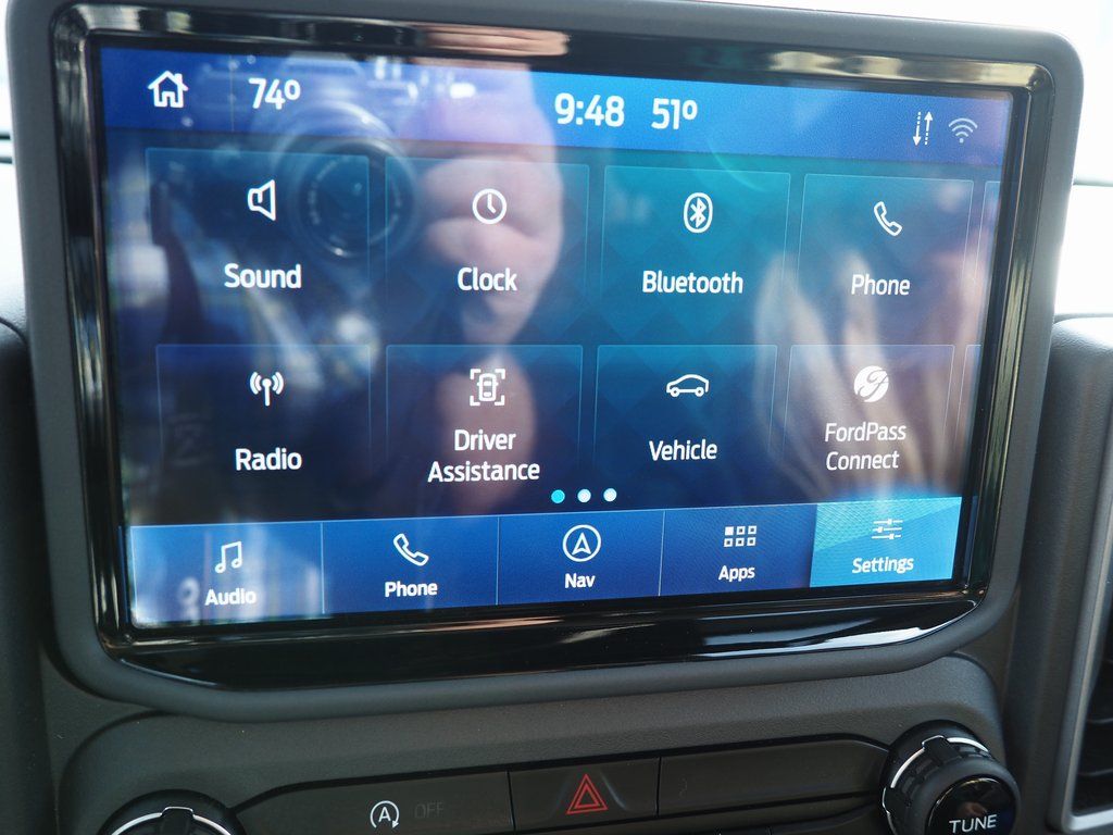 2022 Ford Bronco Sport Big Bend Shadow Black 4D Sport Utility 1.5L EcoBoost 8-Speed Automatic 4WD Big Bend This vehicle comes well equipped with Class II Trailer Tow Package w/Trailer Sway Control, Convenience Package (Front Driver & Passenger Seatback Zipper Pockets, Heated Front Bucket Seats, Intelligent Access (Lock/Unlock), Leather-Wrapped Steering Wheel, LED Fog Lamps, Rear Parking Sensors, Universal Garage Door Opener (UGDO), and Wireless Charging Pad), Equipment Group 200A, Ford Co-Pilot360 Assist+ (Evasive Steering Assist, Intelligent Adaptive Cruise Control w/Stop & Go, and Voice-Activated Touchscreen Navigation System), 3.80 Axle Ratio, 4-Wheel Disc Brakes, 4G LTE Wi-Fi Hotspot Credit, 6 Speakers, ABS brakes, Air Conditioning, Alloy wheels, AM/FM radio: SiriusXM, AM/FM Stereo, Auto High-beam Headlights, Automatic temperature control, Brake assist, Compass, Delay-off headlights, Driver door bin, Driver vanity mirror, Dual front impact airbags, Dual front side impact airbags, Electronic Stability Control, Emergency communication system: SYNC 3 911 Assist, Four wheel independent suspension, Front anti-roll bar, Front Bucket Seats, Front Center Armrest, Front reading lights, Fully automatic headlights, Heated door mirrors, Illuminated entry, Knee airbag, Low tire pressure warning, Occupant sensing airbag, Outside temperature display, Overhead airbag, Overhead console, Panic alarm, Passenger door bin, Passenger vanity mirror, Power door mirrors, Power Moonroof, Power steering, Power windows, Radio data system, Rear anti-roll bar, Rear reading lights, Rear seat center armrest, Rear window defroster, Rear window wiper, Remote keyless entry, Roof rack: rails only, Rubberized Second Row Seat Backs, Security system, SiriusXM Radio, Speed control, Speed-sensing steering, Speed-Sensitive Wipers, Split folding rear seat, Steering wheel mounted audio controls, SYNC 3 Communications & Entertainment System, SYNC 3/Apple CarPlay/Android Auto, Tachometer, Telescoping steering wheel, Tilt steering wheel, Traction control, Trip computer, Unique Cloth Front Bucket Seats, Variably intermittent wipers, and Wheels: 17" Carbonized Gray-Painted Aluminum.