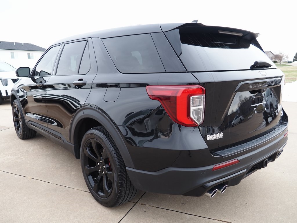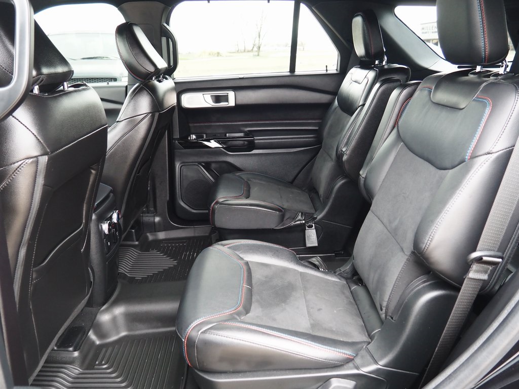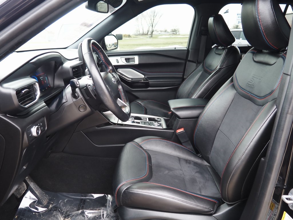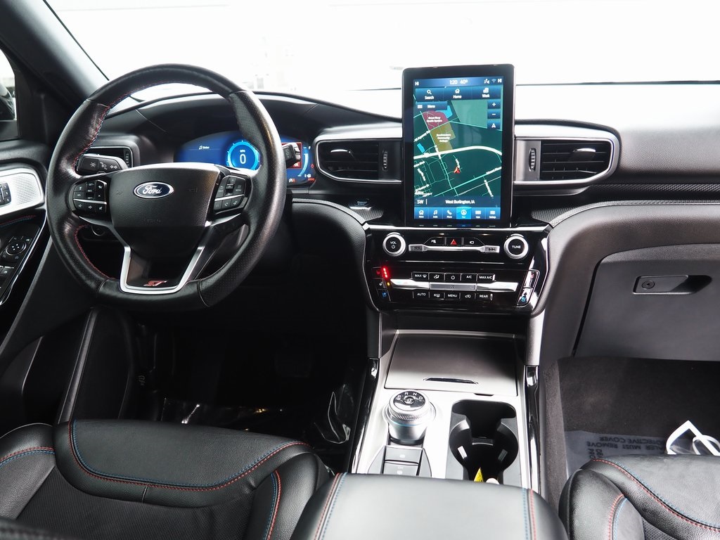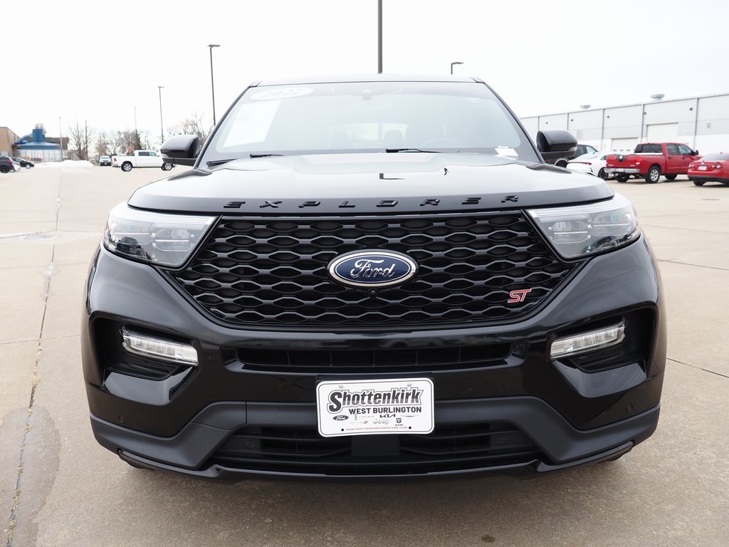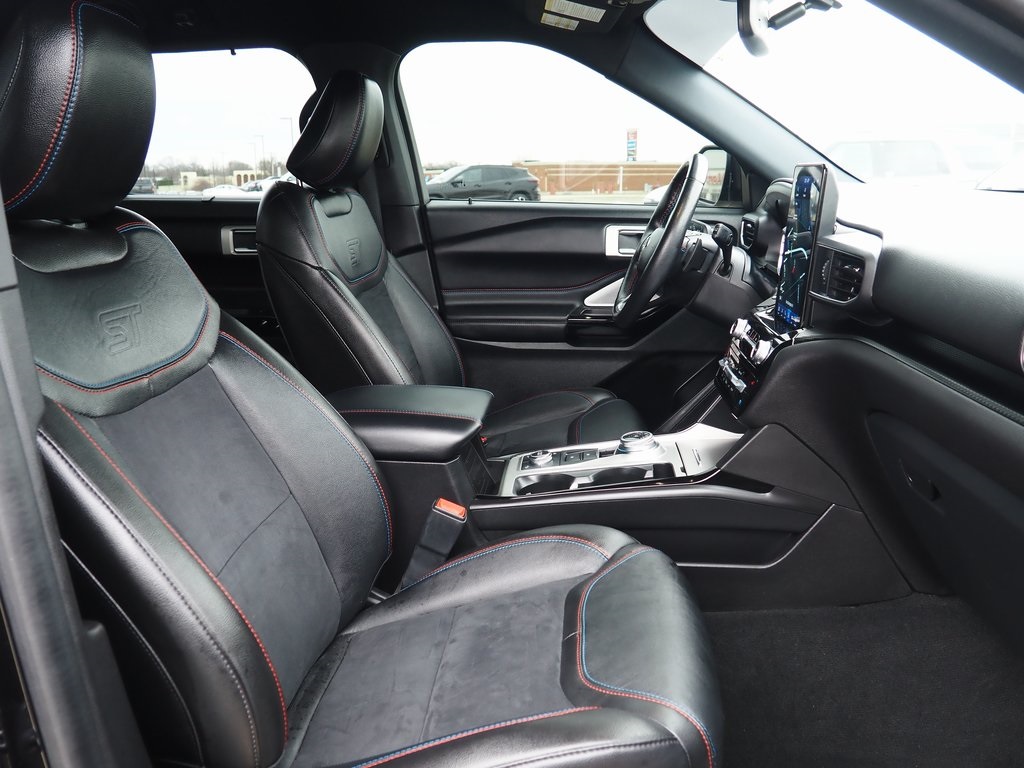 2022 Ford Explorer ST Agate Black Metallic 4D Sport Utility 3.0L EcoBoost V6 10-Speed Automatic 4WD ST This vehicle comes well equipped with Equipment Group 401A, Ford Co-Pilot360 Assist+ (Evasive Steering Assist, Intelligent Adaptive Cruise Control, Speed Sign Recognition, and Voice-Activated Touchscreen Navigation System), Premium Technology Package (10.1" LCD Capacitive Portrait Touchscreen, 1st Row Heated Seats, 2 Additional Speakers, and Leather Htd/Ventilated Sport Captain's Chairs), ST Appearance Package (Leather Seating Surface Sprt Captain's Chairs and Race Red Front & Rear Floor Mats), ST High Package (110V/150W AC Power Outlet, 360-Degree Camera w/Split View, Auto-Dimming Rearview Mirror (Interior), FordPass Connect, Front Parking Sensors, Front Rain-Sensing Wipers, Hands-Free Foot-Activated Liftgate, Memory Driver's Seat, Power Tilt/Telescoping Steering Column, Radio: B&O Sound System by Bang & Olufsen, Reverse Brake Assist, Second Row Heated Seats, Sideview Mirrors w/Gloss Black Caps, SYNC 3 Communications & Entertainment System, Third Row PowerFold (Folds Flat), Universal Garage Door Opener (UGDO), and Wireless Charging Pad), ST High-Performance Pack (Wheels: 21" Aluminum), ST Street Pack (Performance Front & Rear Brakes), 20" Machined Aluminum w/Painted Pockets Wheels, 3.58 Non-Limited-Slip Rear Axle Ratio, 3rd row seats: bench, 4-Wheel Disc Brakes, 4G LTE Wi-Fi Hotspot Removal Credit, 6 Speakers, ABS brakes, Air Conditioning, Alloy wheels, AM/FM radio: SiriusXM, AM/FM Stereo, Auto High-beam Headlights, Automatic temperature control, Brake assist, Bumpers: body-color, Compass, Delay-off headlights, Driver door bin, Driver vanity mirror, Dual front impact airbags, Dual front side impact airbags, Electronic Stability Control, Emergency communication system: SYNC 3 911 Assist, Exterior Parking Camera Rear, Four wheel independent suspension, Front anti-roll bar, Front Bucket Seats, Front Center Armrest, Front dual zone A/C, Front fog lights, Front reading lights, Fully automatic headlights, Hands-Free Liftgate Delete, Heated door mirrors, Heated front seats, Heated steering wheel, Illuminated entry, Knee airbag, Leather steering wheel, Low tire pressure warning, Memory seat, Occupant sensing airbag, Outside temperature display, Overhead airbag, Overhead console, Panic alarm, Passenger door bin, Passenger vanity mirror, Power door mirrors, Power driver seat, Power Liftgate, Power passenger seat, Power steering, Power windows, Rear air conditioning, Rear anti-roll bar, Rear Auxiliary Controls Credit, Rear reading lights, Rear window defroster, Rear window wiper, Remote keyless entry, Security system, SelectShift Capability w/Paddle Shifters, Speed control, Speed-sensing steering, Speed-Sensitive Wipers, Split folding rear seat, Spoiler, Sport steering wheel, Steering wheel mounted audio controls, SYNC 3/Apple CarPlay/Android Auto, Tachometer, Telescoping steering wheel, Tilt steering wheel, Traction control, Trip computer, Variably intermittent wipers, and Ventilated front seats.
