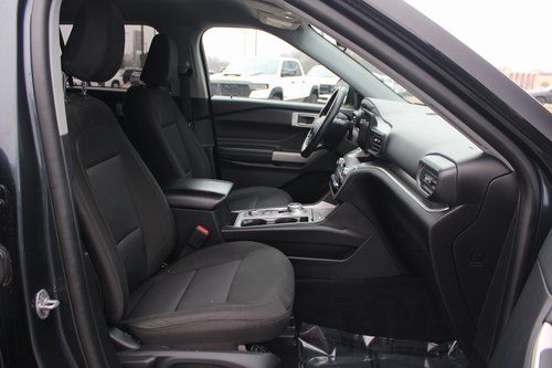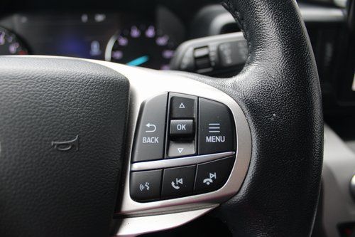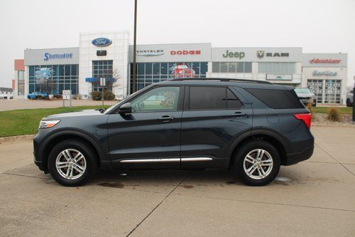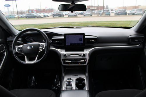 2022 Ford Explorer XLT Stone Blue Metallic 4D Sport Utility 2.3L EcoBoost I-4 10-Speed Automatic 4WD XLT This vehicle comes well equipped with Equipment Group 200A, 1st Row Heated Seats, 3.58 Non-Limited-Slip Rear Axle Ratio, 3rd row seats: bench, 4-Wheel Disc Brakes, 6 Speakers, ABS brakes, Air Conditioning, Alloy wheels, AM/FM radio: SiriusXM, AM/FM Stereo, Auto High-beam Headlights, Auto Start-Stop Removal, Automatic temperature control, Brake assist, Bumpers: body-color, Compass, Delay-off headlights, Driver door bin, Driver vanity mirror, Dual front impact airbags, Dual front side impact airbags, Electronic Stability Control, Emergency communication system: SYNC 3 911 Assist, Exterior Parking Camera Rear, FordPass Connect, Four wheel independent suspension, Front anti-roll bar, Front Bucket Seats, Front Center Armrest, Front dual zone A/C, Front reading lights, Fully automatic headlights, Heated door mirrors, Heated front seats, Illuminated entry, Knee airbag, Leather steering wheel, Low tire pressure warning, Occupant sensing airbag, Outside temperature display, Overhead airbag, Overhead console, Panic alarm, Passenger door bin, Passenger vanity mirror, Power door mirrors, Power driver seat, Power Liftgate, Power passenger seat, Power steering, Power windows, Rear air conditioning, Rear anti-roll bar, Rear reading lights, Rear window defroster, Rear window wiper, Remote keyless entry, Roof rack: rails only, Security system, Speed control, Speed-sensing steering, Speed-Sensitive Wipers, Split folding rear seat, Spoiler, Steering wheel mounted audio controls, SYNC 3 Communications & Entertainment System, SYNC 3/Apple CarPlay/Android Auto, Tachometer, Telescoping steering wheel, Tilt steering wheel, Traction control, Trip computer, Unique Cloth Captain's Chairs, Variably intermittent wipers, and Wheels: 18" 5-Spoke Silver-Painted Aluminum.