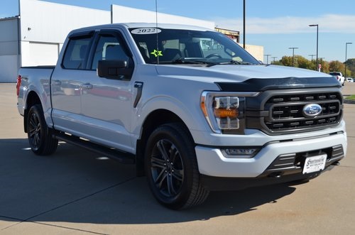2022 Ford F-150 XLT Sport Space White Metallic 4D SuperCrew 5.0L V8 10-Speed Automatic 4WD XLT This vehicle comes well equipped with ABS brakes, Alloy wheels, Compass, Electronic Stability Control, Heated door mirrors, Illuminated entry, Low tire pressure warning, Remote keyless entry, and Traction control ABS brakes, Alloy wheels, Compass, Electronic Stability Control, Heated door mirrors, Illuminated entry, Low tire pressure warning, Remote keyless entry, Traction control, 4-Wheel Disc Brakes, 6 Speakers, Air Conditioning, AM/FM radio, Auto High-beam Headlights, Brake assist, Bumpers: chrome, Cloth 40/20/40 Front Seat, Delay-off headlights, Driver door bin, Driver vanity mirror, Dual front impact airbags, Dual front side impact airbags, Emergency communication system: SYNC 4 911 Assist, Exterior Parking Camera Rear, Front anti-roll bar, Front Center Armrest w/Storage, Front fog lights, Front reading lights, Front wheel independent suspension, Fully automatic headlights, Occupant sensing airbag, Outside temperature display, Overhead airbag, Overhead console, Panic alarm, Passenger door bin, Passenger vanity mirror, Power door mirrors, Power steering, Power windows, Radio data system, Radio: AM/FM Stereo w/6 Speakers, Rear reading lights, Rear step bumper, Rear window defroster, Security system, Speed control, Speed-sensing steering, Split folding rear seat, Steering wheel mounted audio controls, SYNC 4, Tachometer, Telescoping steering wheel, Tilt steering wheel, Trip computer, Variably intermittent wipers, Voltmeter, and Wheels: 17" Silver Painted Aluminum.