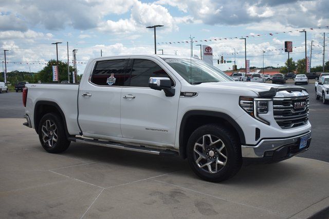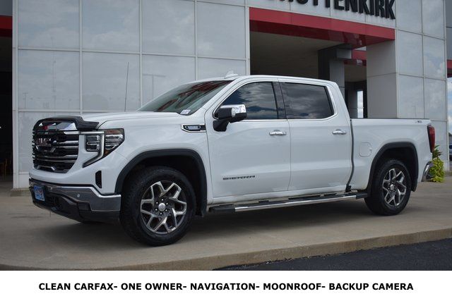2022 GMC Sierra 1500 Summit White SLT 3.0L I6 10-Speed Automatic 4WD Fixed Running Boards, Towing/Camper Pkg, Clean Carfax, One Owner, Navigation, Sunroof/Moonroof, Leather, Local Trade, Backup Camera, Sierra 1500 SLT, 10-Speed Automatic, 4WD, Summit White, Dark Walnut/Slate Leather, 2 Charge/Data USB Ports Inside Center Console, 6 Speakers, ABS brakes, Air Conditioning, AM/FM radio: SiriusXM with 360L, Automatic temperature control, Bumpers: chrome, Compass, Driver door bin, Driver vanity mirror, Electronic Precision Shift, Exterior Parking Camera Rear, Front Bucket Seats, Front Center Armrest w/Storage, Front dual zone A/C, Fully automatic headlights, Heated door mirrors, Heated Driver & Front Outboard Passenger Seating, Heated front seats, Heated Steering Wheel, Hill Descent Control, Illuminated entry, Low tire pressure warning, Memory seat, Navigation System, Outside temperature display, Overhead console, Panic alarm, Passenger door bin, Passenger vanity mirror, Power Door Locks, Power door mirrors, Power driver seat, Power Front Passenger Windows w/Express Up/Down, Power Front Windows w/Driver Express Up/Down, Power Rear Windows w/Express Down, Power Sliding Rear Window w/Rear Defogger, Power steering, Power Sunroof, Power windows, Push Button Start, Radio data system, Rear seat center armrest, Rear step bumper, Rear window defroster, Remote keyless entry, Speed control, Steering Wheel Audio Controls, Steering wheel mounted audio controls, Telescoping steering wheel, Tilt steering wheel, Traction control, Trip computer, Ventilated Driver & Front Passenger Seats.
