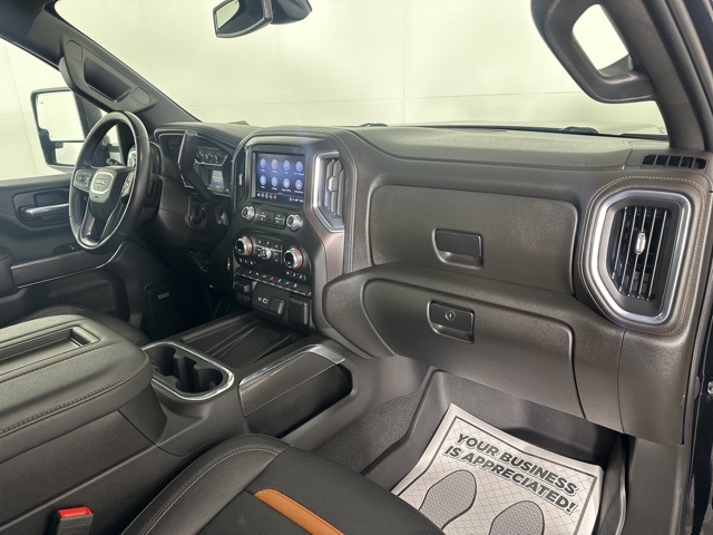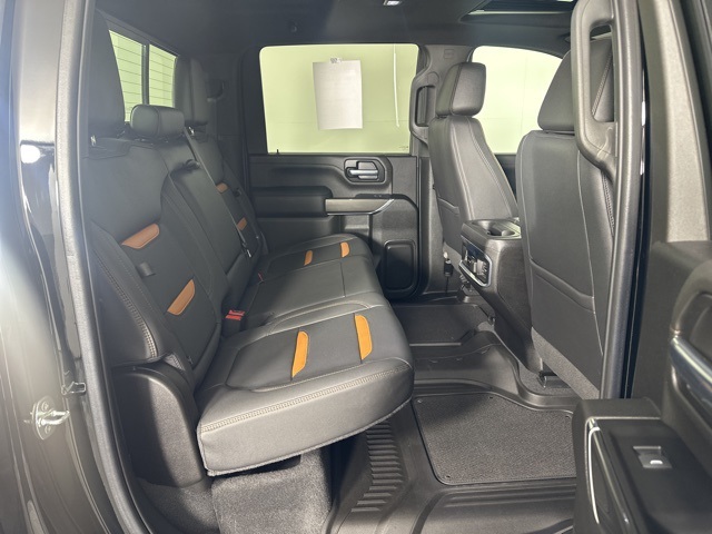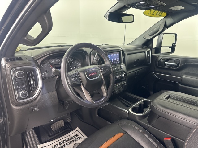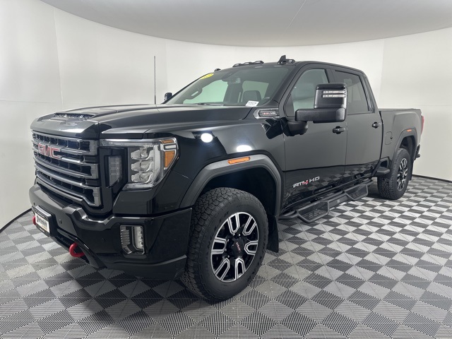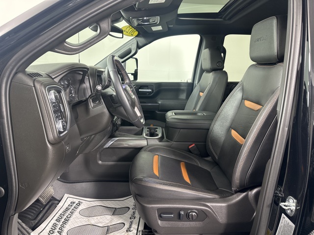 CARFAX One-Owner. Onyx Black 2022 GMC Sierra 2500HD AT4 w/Sunroof 4D Crew Cab 6.6L V8 4WD 6-Speed Automatic 12-Volt Rear Auxiliary Power Outlet, 120-Volt Bed Mounted Power Outlet, 120-Volt Instrument Panel Power Outlet, 2 USB Ports, 2 USB Ports (1st Row), 2-Speed Active Transfer Case, 2nd Row Dual USB Charge-Only Ports, 4.2" Diagonal Color Display Driver Info Center, AT4 Preferred Package, Automatic Emergency Braking, Bed View Camera w/2 Trailer Camera Provisions, Bose Premium 7 Speaker Sound System, Compass Located In Instrument Cluster, Deep-Tinted Glass, Driver Alert Package I, Driver Alert Package II, Electric Rear-Window Defogger, Electrical Lock Control Steering Column, Floor-Mounted Center Console, Following Distance Indicator, Forward Collision Alert, Front Prem Floor Liners w/Removable Carpet Insert, GMC Connected Access Capable, Gooseneck/5th Wheel Package, Gooseneck/5th Wheel Prep Package, HD Rear Vision Camera, HD Surround Vision w/2 Trailer View Camera Provisions, Heated & Ventilated Front Bucket Seats, Heated Driver & Front Outboard Passenger Seats, Hill Descent Control, Integrated Trailer Brake Controller, IntelliBeam Automatic High Beam On/Off, Keyless Open & Start, Lane Change Alert w/Side Blind Zone Alert, Lane Departure Warning System, LEATHER, LED Cargo Area Lighting, LED Smoked Amber Roof Marker Lamps, Manual Tilt-Wheel/Telescoping Steering Column, OnStar & GMC Connected Services Capable, Painted Black Surround Grille, Perimeter Lighting, Power Door Locks, Power Front Passenger Windows w/Express Up/Down, Power Rear Windows w/Express Down, Power Sliding Rear Window w/Defogger, Power Windows w/Driver Express Up/Down, Preferred Equipment Group 4SB, Radio: AM/FM w/Prem GMC Infotainment System & Navi, Rear Cross Traffic Alert, Rear Prem Floor Liners w/Removable Carpet Insert, Rear Wheelhouse Liners, Red Recovery Hooks, Remote Vehicle Starter System, Safety Alert Seat, Spray-On Pickup Box Bed Liner w/AT4 Logo, Steering Wheel Audio Controls, SUNROOF, Ultrasonic Front & Rear Park Assist, Unauthorized Entry Theft-Deterrent System, Universal Home Remote, Wi-Fi Hotspot Capable, Wireless Charging, Wireless Phone Projection, X31 Off-Road Package. Clean CARFAX.