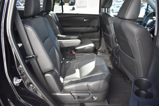 2022 Honda Pilot Black Elite 3.5L V6 24V SOHC i-VTEC 9-Speed Automatic AWD Clean Carfax, One Owner, Navigation, Sunroof/Moonroof, Leather, Local Trade, Backup Camera, Pilot Elite, 9-Speed Automatic, AWD, Black, Black w/Leather Seat Trim, 10 Speakers, 3rd row seats: split-bench, ABS brakes, Air Conditioning, Alloy wheels, AM/FM radio: SiriusXM, Auto-dimming door mirrors, Automatic temperature control, Bumpers: body-color, Compass, Driver door bin, Exterior Parking Camera Rear, Front Bucket Seats, Front Center Armrest, Front dual zone A/C, Front reading lights, Fully automatic headlights, Heated & Ventilated Front Bucket Seats, Heated door mirrors, Heated front seats, Heated rear seats, Heated steering wheel, Illuminated entry, Lane departure: Lane Keeping Assist System (LKAS) active, Low tire pressure warning, Memory seat, Navigation system: Honda Satellite-Linked Navigation System, Outside temperature display, Overhead console, Passenger door bin, Passenger vanity mirror, Power door mirrors, Power driver seat, Power Liftgate, Power moonroof, Power passenger seat, Power steering, Power windows, Radio data system, Rear air conditioning, Rear window defroster, Rear window wiper, Reclining 3rd row seat, Remote keyless entry, Security system, Speed control, Split folding rear seat, Spoiler, Steering wheel mounted audio controls, Telescoping steering wheel, Tilt steering wheel, Traction control, Turn signal indicator mirrors, Ventilated front seats.