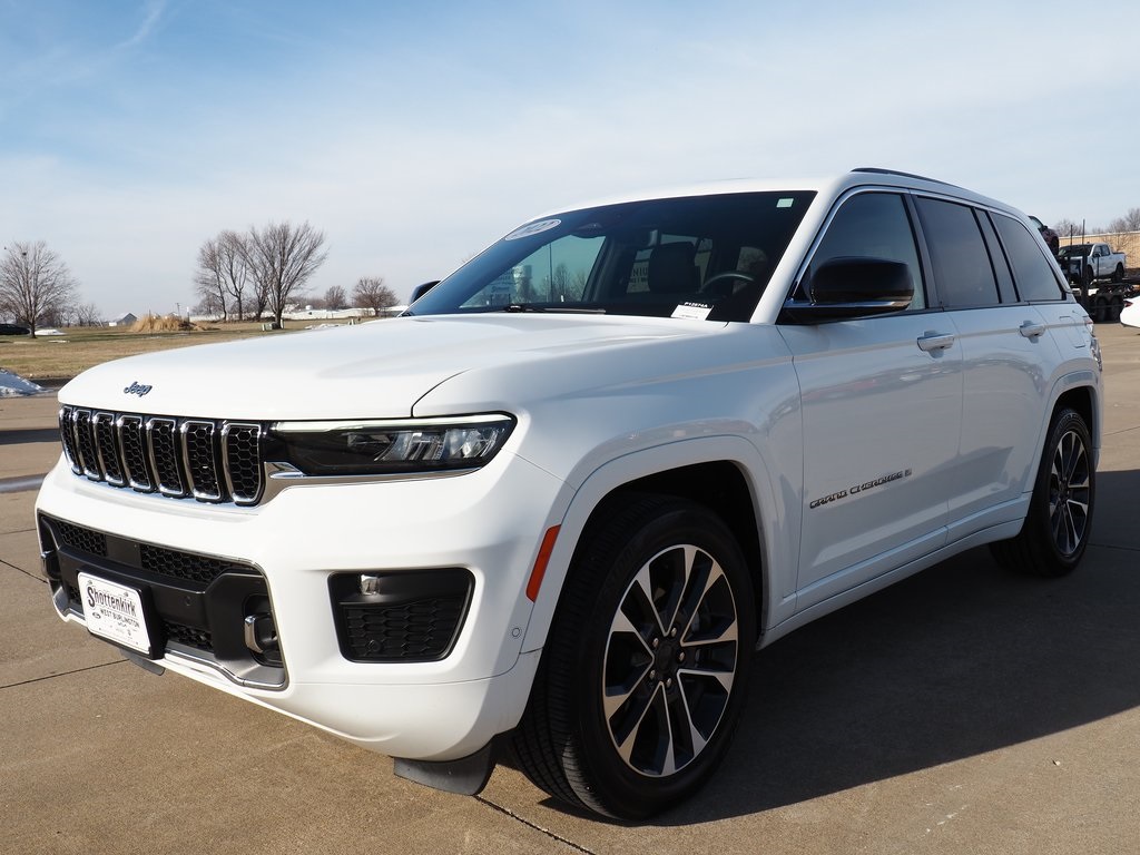 2022 Jeep Grand Cherokee Overland Bright White Clearcoat 4D Sport Utility 3.6L V6 24V VVT 8-Speed Automatic 4WD Overland This vehicle comes well equipped with Luxury Tech Group IV (12-Way Power Adjust Driver Seat, 12-Way Power Adjust Front Passenger Seat, 2nd-Row Manual Window Shades, ATC w/4-Zone Temp Control, Nappa Leather Seats w/AAM, Passenger Seat Memory, Power Driver Seatback Massage, Power Front Passenger Seatback Massage, Rearview Autodim Digital Display Mirror, and Wireless Charging Pad), Quick Order Package 22N, 10 Speakers, 10.1" Touchscreen Display, 19 Speakers High Performance Audio, 3.45 Rear Axle Ratio, 4-Wheel Disc Brakes, 4G LTE Wi-Fi Hotspot, 950 Watt Amplifier, ABS brakes, Active Noise Control System, Adaptive suspension, Air Conditioning, All Radio Equipped Vehicles, Alloy wheels, AM/FM radio: SiriusXM with 360L, Anti-whiplash front head restraints, Apple CarPlay, Audio memory, Auto High-beam Headlights, Auto-dimming door mirrors, Auto-dimming Rear-View mirror, Auto-leveling suspension, Automatic temperature control, Brake assist, Bumpers: body-color, Compass, Connected Travel & Traffic Services, Connectivity - US/Canada, Delay-off headlights, Disassociated Touchscreen Display, Driver door bin, Driver vanity mirror, Dual front impact airbags, Dual front side impact airbags, Electronic Stability Control, Emergency communication system, For Details, Visit DriveUconnect.com, For More Info, Call 800-643-2112, Four wheel independent suspension, Front anti-roll bar, Front Bucket Seats, Front Center Armrest w/Storage, Front dual zone A/C, Front fog lights, Front reading lights, Fully automatic headlights, Garage door transmitter, Global Telematics Box Module (TBM), Google Android Auto, GPS Antenna Input, GPS Navigation, HD Radio, Heated door mirrors, Heated front seats, Heated rear seats, Heated steering wheel, Illuminated entry, Integrated Center Stack Radio, Integrated Voice Command w/Bluetooth, Knee airbag, Leather steering wheel, Low tire pressure warning, Memory seat, Nappa Leather Seats, Navigation System, Normal Duty Suspension, Occupant sensing airbag, Outside temperature display, Overhead airbag, Overhead console, Panic alarm, Passenger door bin, Passenger vanity mirror, Power door mirrors, Power driver seat, Power Liftgate, Power moonroof, Power passenger seat, Power steering, Power windows, Radio data system, Radio: Uconnect 5 Nav w/10.1" Display, Radio: Uconnect 5 Nav w/8.4" Display, Rain sensing wipers, Rear anti-roll bar, Rear reading lights, Rear seat center armrest, Rear window defroster, Rear window wiper, Remote keyless entry, Roof rack: rails only, Security system, SiriusXM Radio Service, SiriusXM Satellite Radio, SiriusXM w/360L, Speed control, Speed-Sensitive Wipers, Split folding rear seat, Spoiler, Steering wheel memory, Steering wheel mounted audio controls, Tachometer, Telescoping steering wheel, Tilt steering wheel, Traction control, Trip computer, Turn signal indicator mirrors, USB Host Flip, Variably intermittent wipers, Ventilated front seats, Voltmeter, and Wheels: 20" x 8.5" Machined Face AluminuM.