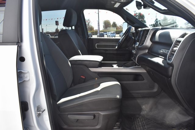 2022 Ram 3500 Bright White Clearcoat SLT 6.4L V8 Aisin 6-Speed Automatic 4WD Fixed Running Boards, Towing/Camper Pkg, Clean Carfax, One Owner, Backup Camera, 3500 SLT, Aisin 6-Speed Automatic, 4WD, Bright White Clearcoat, Diesel Gray/Black Cloth, 6 Speakers, ABS brakes, Air Conditioning, Air Conditioning ATC w/Dual Zone Control, Bluetooth Handsfree Phone & Audio, Compass, Driver door bin, Front Armrest w/Cupholders, Front Center Armrest w/Storage, Fully automatic headlights, Heated door mirrors, Heated Front Seats, Heated Seats & Wheel Group, Heated Steering Wheel, Manual Adjust 4-Way Front Passenger Seat, Occupant sensing airbag, Outside temperature display, Overhead Console, Overhead console, ParkView Rear Back-Up Camera, Passenger door bin, Passenger vanity mirror, Power door mirrors, Power Rear Sliding Window, Power steering, Power windows, Radio data system, Rear Window Defroster, Speed control, Traction control, Turn signal indicator mirrors.