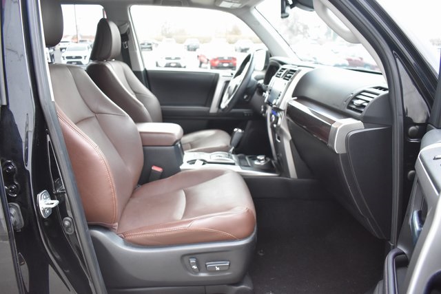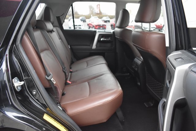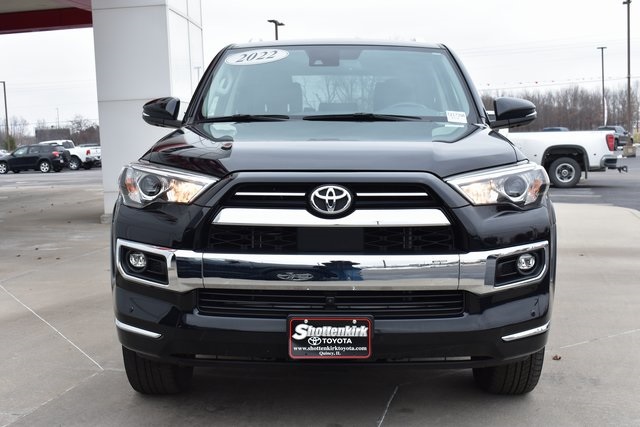 2022 Toyota 4Runner Black Limited 4.0L V6 DOHC 24V 5-Speed with ECT 4WD Towing/Camper Pkg, Clean Carfax, One Owner, Navigation, Sunroof/Moonroof, Leather, Local Trade, Backup Camera, 4Runner Limited, 5-Speed with ECT, 4WD, Black, Redwood w/Leather Seat Trim, 15 Speakers, ABS brakes, Air Conditioning, Alloy wheels, AM/FM radio: SiriusXM, Auto-dimming Rear-View mirror, Automatic temperature control, Bumpers: body-color, Compass, Driver door bin, Driver vanity mirror, Dual Zone Auto Climate Control, Front Bucket Seats, Front Center Armrest, Front dual zone A/C, Front reading lights, Fully automatic headlights, Garage Door Opener, Garage door transmitter: HomeLink, Heated door mirrors, Heated front seats, Heated/Ventilated Front Bucket Seats, Illuminated entry, Leather Seat Trim, Low tire pressure warning, Memory seat, Navigation System, Occupant sensing airbag, Outside Rear View Mirror, Outside temperature display, Overhead console, Passenger door bin, Passenger vanity mirror, Power door mirrors, Power driver seat, Power moonroof, Power passenger seat, Power steering, Power windows, Radio: Premium Audio w/JBL, Rear seat center armrest, Rear window defroster, Rear window wiper, Remote keyless entry, Roof rack: rails only, Security system, Speed control, Split folding rear seat, Spoiler, Steering wheel mounted audio controls, Tilt steering wheel, Traction control, Turn signal indicator mirrors, Ventilated front seats.