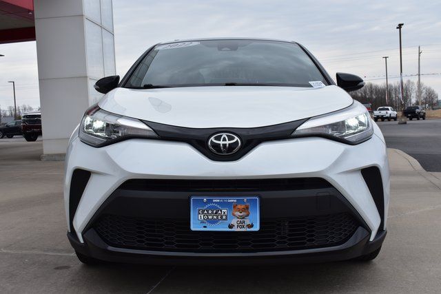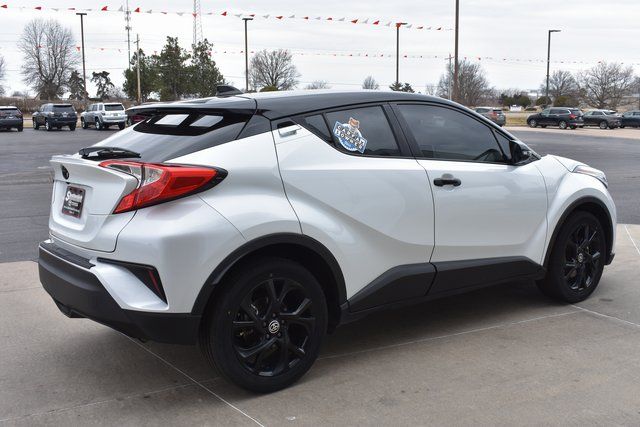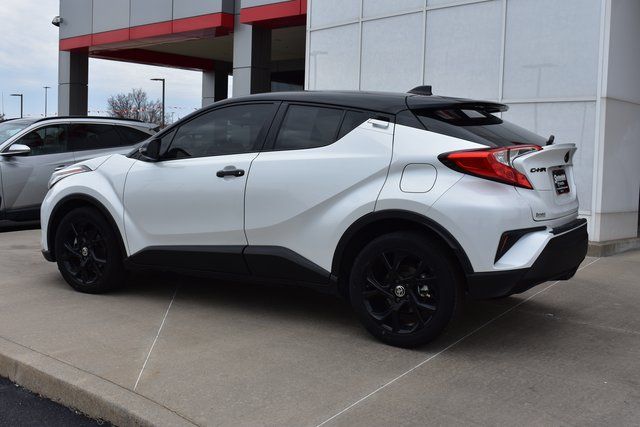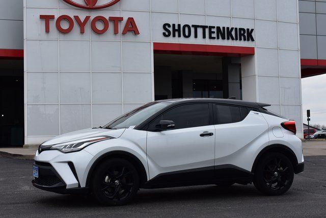2022 Toyota C-HR White Nightshade 2.0L I4 DOHC 16V CVT FWD One Owner, Local Trade, Backup Camera, C-HR Nightshade, CVT, FWD, White, Black w/Fabric Seat Material, 6 Speakers, ABS brakes, Air Conditioning, Alloy wheels, AM/FM radio: SiriusXM, Auto-dimming Rear-View mirror, Automatic temperature control, Bumpers: body-color, Driver door bin, Driver vanity mirror, Exterior Parking Camera Rear, Fabric Seat Material, Front Bucket Seats, Front Center Armrest, Front dual zone A/C, Front reading lights, Fully automatic headlights, Heated door mirrors, Illuminated entry, Leather Shift Knob, Low tire pressure warning, Outside temperature display, Panic alarm, Passenger door bin, Passenger vanity mirror, Power door mirrors, Power steering, Power windows, Radio data system, Rear window defroster, Rear window wiper, Remote keyless entry, Speed control, Split folding rear seat, Spoiler, Steering wheel mounted audio controls, Telescoping steering wheel, Tilt steering wheel, Traction control, Turn signal indicator mirrors.