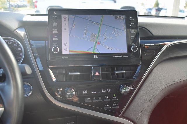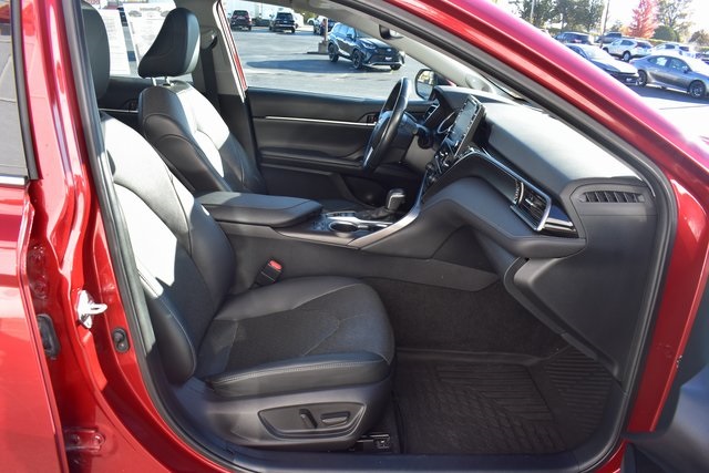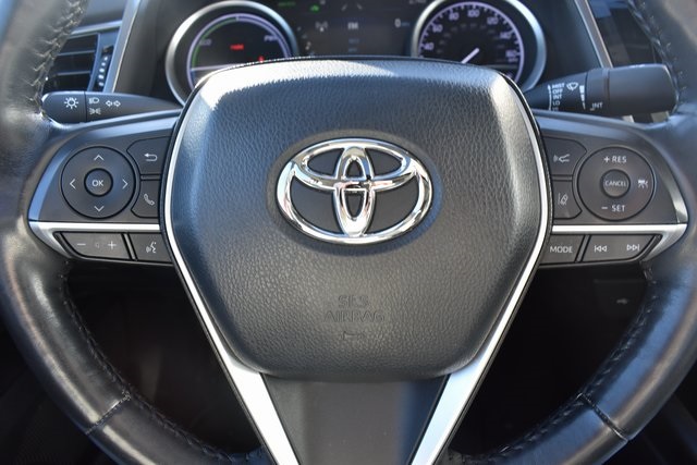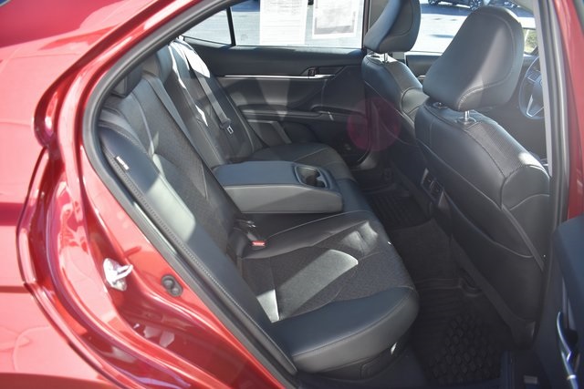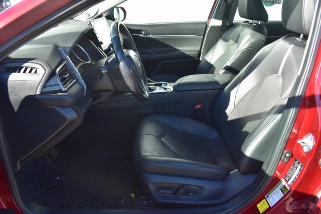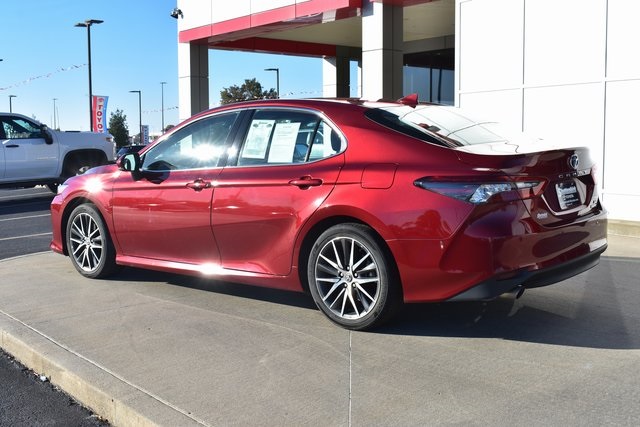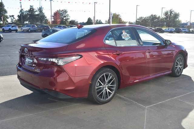 2022 Toyota Camry Hybrid Red XLE 2.5L I4 DOHC 16V eCVT FWD One Owner, Navigation, Sunroof/Moonroof, Leather, Backup Camera, Camry Hybrid XLE, eCVT, FWD, Red, Black w/Perforated Leather Seat Trim, 6 Speakers, ABS brakes, Air Conditioning, Alloy wheels, AM/FM radio: SiriusXM, Automatic temperature control, Bumpers: body-color, Driver door bin, Driver vanity mirror, Exterior Parking Camera Rear, Front Bucket Seats, Front Center Armrest, Front dual zone A/C, Front reading lights, Fully automatic headlights, Heated door mirrors, Heated front seats, Illuminated entry, Low tire pressure warning, Outside temperature display, Overhead console, Panic alarm, Passenger door bin, Passenger vanity mirror, Perforated Leather Seat Trim, Power door mirrors, Power driver seat, Power passenger seat, Power steering, Power windows, Radio data system, Rear seat center armrest, Rear window defroster, Remote keyless entry, Speed control, Split folding rear seat, Steering wheel mounted audio controls, Telescoping steering wheel, Tilt steering wheel, Traction control, Turn signal indicator mirrors.