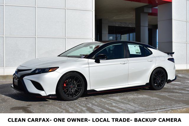 2022 Toyota Camry White TRD V6 3.5L V6 DOHC 24V 8-Speed Automatic FWD Clean Carfax, One Owner, Local Trade, Backup Camera, Camry TRD V6, 8-Speed Automatic, FWD, White, 6 Speakers, ABS brakes, Active Cruise Control, Air Conditioning, Alloy wheels, AM/FM radio: SiriusXM, Automatic temperature control, Bumpers: body-color, Driver door bin, Electronic Stability Control, Exterior Parking Camera Rear, Fabric Seat Trim w/Sport SofTex, Front Bucket Seats, Front Center Armrest, Front dual zone A/C, Front reading lights, Fully automatic headlights, Heated door mirrors, Illuminated entry, Leather Shift Knob, Low tire pressure warning, Outside temperature display, Overhead console, Passenger door bin, Passenger vanity mirror, Power door mirrors, Power driver seat, Power steering, Power windows, Radio data system, Rear seat center armrest, Rear window defroster, Remote keyless entry, Security system, Speed control, Spoiler, Steering wheel mounted audio controls, Telescoping steering wheel, Tilt steering wheel, Traction control, TRD Boot Shift Lever & Knob, TRD Rear Spoiler, Trip computer, Turn signal indicator mirrors.