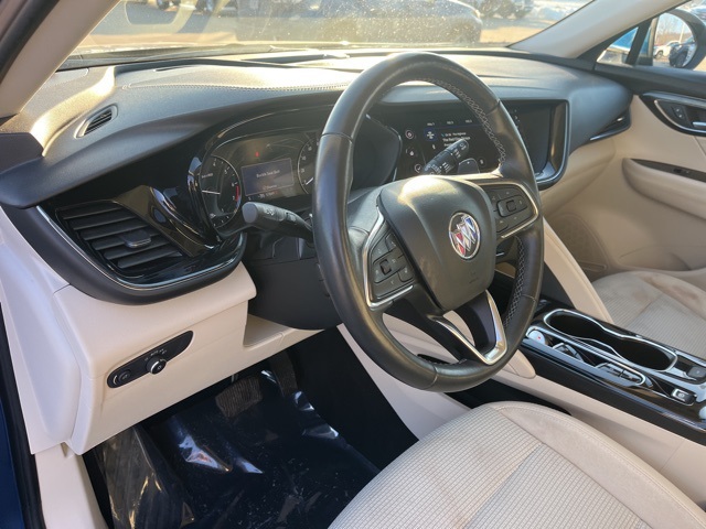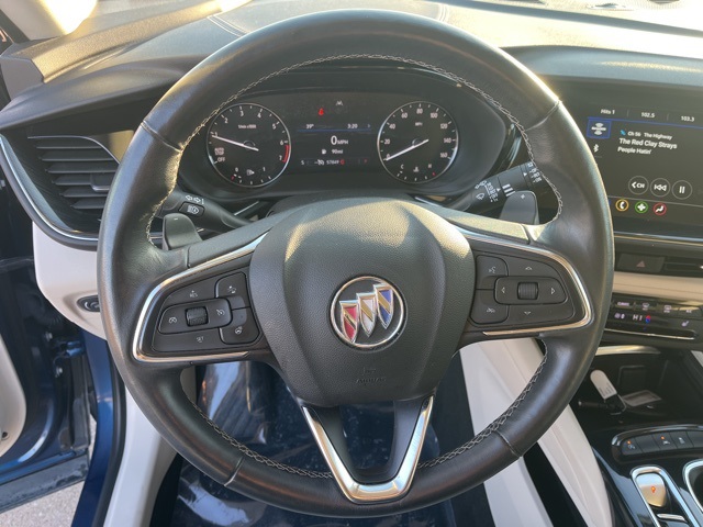 CARFAX One-Owner. Heated seats, Heated steering wheel, XM SIRIUS Radio, Push button start, Shottenkirk Certified, Fully Serviced and Detailed, Bluetooth, Rear Back Up Camera, Power driver's seat, Blind spot indicator, Convenience Package, Apple Car Play, Onstar, Balance of factory warranty, Free Carfax history report, Steering Wheel Controls, Alloy Wheels, Lane Monitor, Envision Preferred, 4D Sport Utility, 2.0L Turbocharged, 9-Speed Automatic, FWD, Sapphire Metallic, Whisper Beige w/Ebony Accents w/Front Bucket Seats, 3.47 Final Drive Axle Ratio, 4-Wheel Disc Brakes, 6 Speakers, 6-Speaker Audio System Feature, 7-Speaker Audio System Feature w/Amplifier, 8-Way Power Driver Seat Adjuster, ABS brakes, Air Conditioning, Air Quality Indicator Sensor, Alloy wheels, AM/FM radio: SiriusXM, Apple CarPlay/Android Auto, Auto High-beam Headlights, Auto-dimming door mirrors, Auto-dimming Rear-View mirror, Automatic Air Circulation/Air Quality Sensor, Automatic Emergency Braking, Brake assist, Bumpers: body-color, Cloth w/Leatherette Seat Trim, Comfort & Convenience Package, Compass, Delay-off headlights, Deleted 3 Years of OnStar & Connected Services Plan, Driver door bin, Driver vanity mirror, Dual front impact airbags, Dual front side impact airbags, Dual-Zone ACC Air Conditioning, Electronic stabiliy control, Emergency communication system: OnStar and Buick connected services capable, Following Distance Indicator, Forward Collision Alert, Four wheel independent suspension, Front anti-roll bar, Front Bin Center Console USB Ports, Front Bucket Seats, Front Center Armrest, Front Passenger 6-Way Manual Seat Adjuster, Front Pedestrian Braking, Front reading lights, Fully automatic headlights, Hands Free Power Programmable Liftgate, Heated door mirrors, Heated Driver & Front Passenger Seats, Heated Steering Wheel, Illuminated entry, IntelliBeam Headlamp Control w/Auto High Beam, Knee airbag, Lane Keep Assist w/Lane Departure Warning, Low tire pressure warning, Occupant sensing airbag, Outside temperature display, Overhead airbag, Overhead console, Panic alarm, Passenger door bin, Passenger vanity mirror, Power door mirrors, Power driver seat, Power steering, Power windows, Preferred Equipment Group 1SC, Premium audio system: Buick Infotainment System, Radio data system, Radio: 8" Diagonal Buick Infotainment System, Radio: Buick Infotainment System AM/FM Stereo, Rear anti-roll bar, Rear reading lights, Rear seat center armrest, Rear window defroster, Rear window wiper, Remote keyless entry, Remote Vehicle Starter System, Security system, SiriusXM Radio, Speed control, Split folding rear seat, Spoiler, Steering wheel mounted audio controls, Telescoping steering wheel, Tilt steering wheel, Traction control, Trip computer, USB Charging-Only Ports, Variably intermittent wipers, Wheels: 18" Aluminum w/Light Charcoal Met Finish, Wireless Apple CarPlay/Wireless Android Auto.