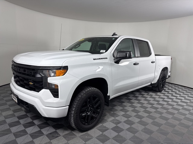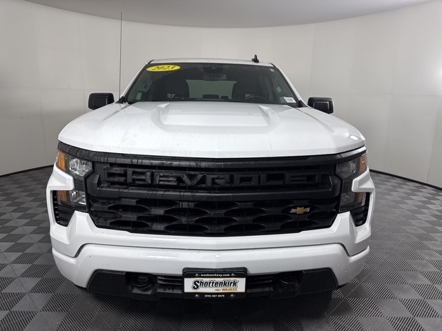 CARFAX One-Owner. Summit White 2023 Chevrolet Silverado 1500 Custom 4D Crew Cab 2.7L Turbo 4WD 8-Speed Automatic 10-Way Power Driver Seat w/Lumbar, 120-Volt Bed Mounted Power Outlet, 120-Volt Instrument Panel Power Outlet, 3.5" Monochromatic Display Driver Info Center, Bluetooth® For Phone, Chevrolet Connected Access Capable, Color-Keyed Carpeting Floor Covering, Compass, Custom Convenience Package, Custom Value Package, Deep-Tinted Glass, Dual Rear USB Ports (Charge Only), Electric Rear-Window Defogger, Electrical Steering Column Lock, Electronic Cruise Control, EZ Lift Power Lock & Release Tailgate, Front Frame-Mounted Black Recovery Hooks, Front Rubberized Vinyl Floor Mats, HD Rear Vision Camera, Hitch Guidance, LED Cargo Area Lighting, Manual Tilt Wheel Steering Column, OnStar & Chevrolet Connected Services Capable, Power Front Windows w/Driver Express Up/Down, Power Front Windows w/Passenger Express Down, Power Rear Windows w/Express Down, Preferred Equipment Group 1CX, Rear 60/40 Folding Bench Seat (Folds Up), Rear Rubberized-Vinyl Floor Mats, Remote Keyless Entry, Remote Vehicle Starter System, SiriusXM Radio, Standard Tailgate, Theft Deterrent System (Unauthorized Entry), Trailering Package, Wi-Fi Hot Spot Capable, Wireless Phone Projection. Clean CARFAX.