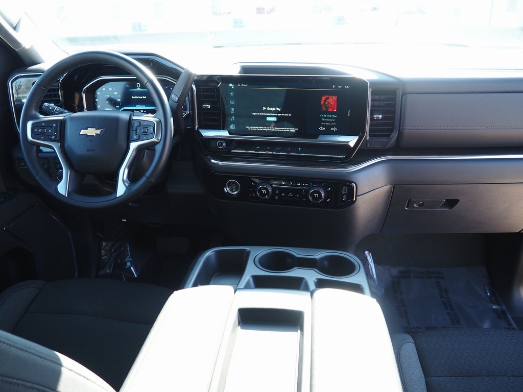 2023 Chevrolet Silverado 1500 LT Sterling Gray Metallic 4D Crew Cab 2.7L Turbo 8-Speed Automatic 4WD LT This vehicle comes well equipped with Convenience Package (10-Way Power Driver Seat w/Lumbar, 120-Volt Bed Mounted Power Outlet, 120-Volt Instrument Panel Power Outlet, Dual Rear USB Ports (Charge Only), Dual-Zone Automatic Climate Control, Heated Driver & Front Outboard Passenger Seats, Heated Steering Wheel, Keyless Open & Start, and Wrapped Steering Wheel), High Capacity Suspension Package, Standard Suspension Package, Trailering Package (Hitch Guidance), 12.3" Multicolor Reconfigurable Digital Display, 3.42 Rear Axle Ratio, 4-Wheel Disc Brakes, 40/20/40 Front Split-Bench Seat, 6 Speakers, 6-Speaker Audio System, ABS brakes, Air Conditioning, All-Star Edition, Alloy wheels, AM/FM radio: SiriusXM with 360L, Apple CarPlay/Android Auto, Auto High-beam Headlights, Auto-Locking Rear Differential, Automatic Emergency Braking, Automatic temperature control, Bluetooth® For Phone, Brake assist, Bumpers: chrome, Chevrolet Connected Access Capable, Chrome Mirror Caps, Cloth Seat Trim, Color-Keyed Carpeting Floor Covering, Compass, Deep-Tinted Glass, Delay-off headlights, Driver door bin, Driver vanity mirror, Dual front impact airbags, Dual front side impact airbags, Electric Rear-Window Defogger, Electrical Steering Column Lock, Electronic Cruise Control, Electronic Stability Control, Following Distance Indicator, Forward Collision Alert, Front anti-roll bar, Front Center Armrest w/Storage, Front dual zone A/C, Front Frame-Mounted Black Recovery Hooks, Front Pedestrian Braking, Front reading lights, Front wheel independent suspension, Fully automatic headlights, HD Rear Vision Camera, Heated door mirrors, Heated front seats, Heated steering wheel, Illuminated entry, IntelliBeam Automatic High Beam On/Off, Lane Keep Assist w/Lane Departure Warning, LED Cargo Area Lighting, Low tire pressure warning, Not Equipped w/Steering Column Lock, Occupant sensing airbag, OnStar & Chevrolet Connected Services Capable, Outside temperature display, Overhead airbag, Overhead console, Panic alarm, Passenger door bin, Passenger vanity mirror, Power door mirrors, Power driver seat, Power Front Windows w/Driver Express Up/Down, Power Front Windows w/Passenger Express Down, Power Rear Windows w/Express Down, Power steering, Power windows, Premium audio system: Chevrolet Infotainment 3 Premium, Radio data system, Radio: Chevrolet Infotainment 3 Premium System, Rear 60/40 Folding Bench Seat (Folds Up), Rear reading lights, Rear step bumper, Rear window defroster, Remote keyless entry, Remote Vehicle Starter System, Security system, SiriusXM w/360L, Speed control, Speed-sensing steering, Split folding rear seat, Steering Wheel Audio Controls, Steering wheel mounted audio controls, Tachometer, Telescoping steering wheel, Theft Deterrent System (Unauthorized Entry), Tilt steering wheel, Traction control, Trip computer, Variably intermittent wipers, Voltmeter, Wheels: 18" x 8.5" Bright Silver Painted Aluminum, Wheels: 20" x 9" Painted Aluminum, Wi-Fi Hot Spot Capable, and Wireless Phone Projection.