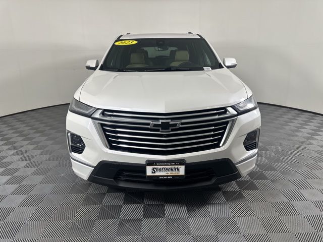 CARFAX One-Owner. Iridescent Pearl Tricoat 2023 Chevrolet Traverse Premier AWD w/Sunroof 4D Sport Utility 3.6L V6 SIDI VVT AWD 9-Speed Automatic 3RD ROW SEATING, Heated 2nd Row Outboard Position Seats, Heated Driver & Front Passenger Seats, LEATHER, Navigation System, Preferred Equipment Group 1LZ, SUNROOF, Ventilated Driver & Front Passenger Seats.
