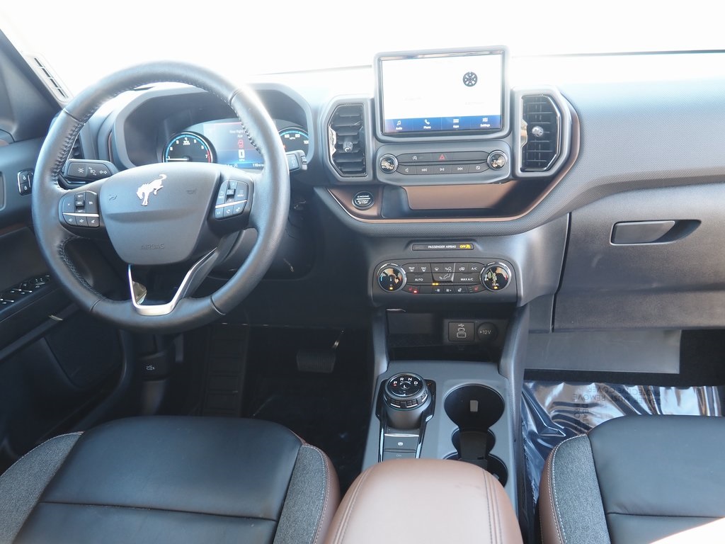 2023 Ford Bronco Sport Outer Banks Oxford White 4D Sport Utility 1.5L EcoBoost 8-Speed Automatic 4WD Outer Banks This vehicle comes well equipped with Equipment Group 300A, 3.80 Axle Ratio, 4-Wheel Disc Brakes, 6 Speakers, ABS brakes, Air Conditioning, Alloy wheels, AM/FM radio: SiriusXM, AM/FM Stereo, Auto High-beam Headlights, Auto-dimming Rear-View mirror, Automatic temperature control, Brake assist, Compass, Delay-off headlights, Driver door bin, Driver vanity mirror, Dual front impact airbags, Dual front side impact airbags, Electronic Stability Control, Emergency communication system: SYNC 3 911 Assist, Four wheel independent suspension, Front & Rear Floor Liners, Front anti-roll bar, Front Bucket Seats, Front Center Armrest, Front dual zone A/C, Front fog lights, Front License Plate Bracket, Front reading lights, Fully automatic headlights, Heated door mirrors, Heated front seats, Heated steering wheel, Illuminated entry, Knee airbag, Leather Trimmed Heated Sport Contour Bucket Seats, Low tire pressure warning, Memory seat, Occupant sensing airbag, Outside temperature display, Overhead airbag, Overhead console, Panic alarm, Passenger door bin, Passenger vanity mirror, Power door mirrors, Power driver seat, Power passenger seat, Power steering, Power windows, Radio data system, Rain sensing wipers, Rear anti-roll bar, Rear Parking Sensors, Rear reading lights, Rear seat center armrest, Rear window defroster, Rear window wiper, Remote keyless entry, Security system, SiriusXM, Speed control, Speed-sensing steering, Speed-Sensitive Wipers, Split folding rear seat, Steering wheel mounted audio controls, SYNC 3 Communications & Entertainment System, SYNC 3/Apple CarPlay/Android Auto, Tachometer, Telescoping steering wheel, Tilt steering wheel, Traction control, Trip computer, Variably intermittent wipers, and Wheels: 18" Ebony Black-Painted Aluminum.