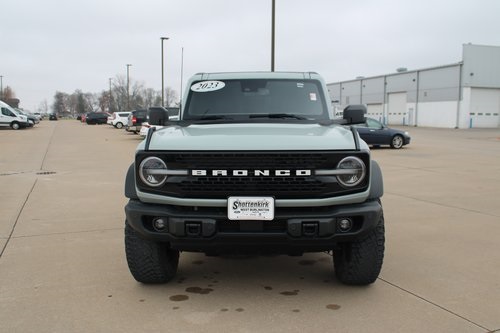 2023 Ford Bronco Wildtrak Cactus Gray 4D Sport Utility 2.7L EcoBoost V6 10-Speed Automatic 4WD Wildtrak This vehicle comes well equipped with ABS brakes, Compass, Electronic Stability Control, Heated door mirrors, Illuminated entry, Low tire pressure warning, Remote keyless entry, and Traction control ABS brakes, Compass, Electronic Stability Control, Heated door mirrors, Illuminated entry, Low tire pressure warning, Remote keyless entry, Traction control, 4-Wheel Disc Brakes, 7 Speakers, Air Conditioning, AM/FM radio: SiriusXM with 360L, AM/FM Stereo, Auto High-beam Headlights, Brake assist, Delay-off headlights, Driver door bin, Driver vanity mirror, Dual front impact airbags, Dual front side impact airbags, Emergency communication system: 911 Assist, Exterior Parking Camera Rear, Front anti-roll bar, Front Bucket Seats, Front Center Armrest, Front reading lights, Front wheel independent suspension, Fully automatic headlights, Integrated roll-over protection, Occupant sensing airbag, Outside temperature display, Overhead airbag, Overhead console, Panic alarm, Passenger door bin, Passenger vanity mirror, Power door mirrors, Power steering, Power windows, Radio data system, Security system, SiriusXM Radio w/360L, Speed control, Split folding rear seat, Steering wheel mounted audio controls, SYNC 4, Tachometer, Telescoping steering wheel, Tilt steering wheel, Trip computer, and Variably intermittent wipers.