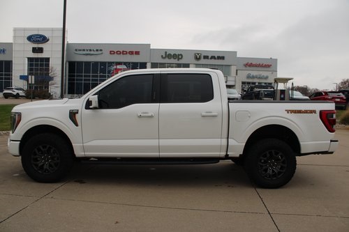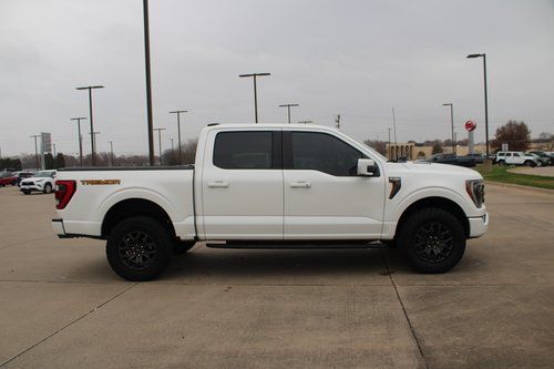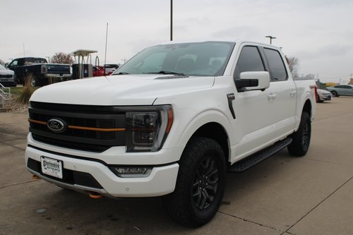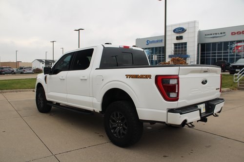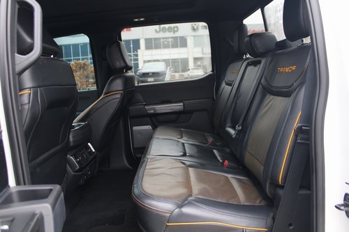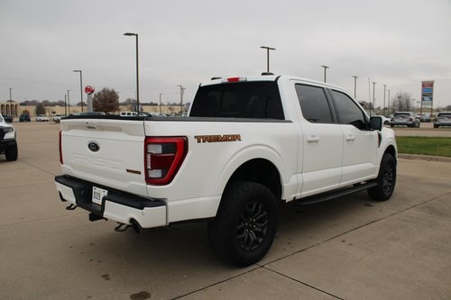 2023 Ford F-150 Tremor Star White Metallic Tri-Coat 4D SuperCrew 3.5L V6 EcoBoost 10-Speed Automatic 4WD Tremor This vehicle comes well equipped with ABS brakes, Alloy wheels, Compass, Electronic Stability Control, Front dual zone A/C, Heated door mirrors, Heated front seats, Illuminated entry, Low tire pressure warning, Remote keyless entry, and Traction control GVWR: 7,050 lbs Payload Package, ABS brakes, Alloy wheels, Compass, Electronic Stability Control, Front dual zone A/C, Heated door mirrors, Heated front seats, Illuminated entry, Low tire pressure warning, Remote keyless entry, Traction control, 4-Wheel Disc Brakes, 6 Speakers, Air Conditioning, AM/FM radio: SiriusXM with 360L, Auto High-beam Headlights, Auto-dimming door mirrors, Automatic temperature control, Brake assist, Bumpers: body-color, Class IV Trailer Hitch Receiver, Delay-off headlights, Driver door bin, Dual front impact airbags, Dual front side impact airbags, Electronic Locking w/3.73 Axle Ratio, Emergency communication system: SYNC 4 911 Assist, Exterior Parking Camera Rear, Front anti-roll bar, Front Bucket Seats, Front Center Armrest, Front fog lights, Front reading lights, Front wheel independent suspension, Fully automatic headlights, Navigation system: Connected Navigation, Occupant sensing airbag, Outside temperature display, Overhead airbag, Overhead console, Panic alarm, Passenger door bin, Passenger vanity mirror, Power door mirrors, Power driver seat, Power passenger seat, Power steering, Power windows, Radio data system, Radio: AM/FM SiriusXM w/360L, Rear reading lights, Rear step bumper, Rear window defroster, Security system, Speed control, Speed-sensing steering, Split folding rear seat, Steering wheel mounted audio controls, SYNC 4 w/Enhanced Voice Recognition, Tachometer, Telescoping steering wheel, Tilt steering wheel, Trip computer, Turn signal indicator mirrors, Unique Sport Cloth 40/Console/40 Power Front Seat, Variably intermittent wipers, Voltmeter, and Wheels: 18" Alloy w/Dark Matte Finish.