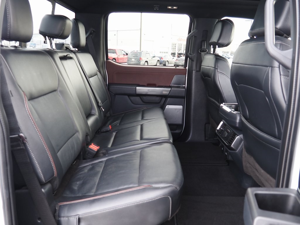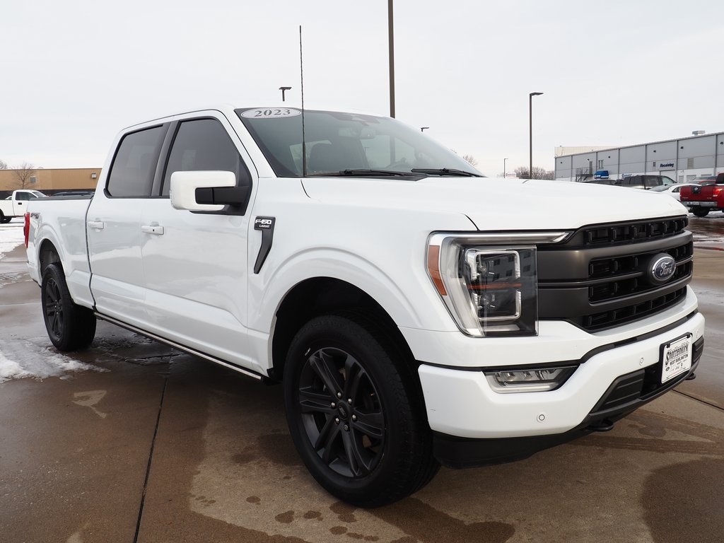 2023 Ford F-150 Lariat Sport Oxford White 4D SuperCrew 3.5L V6 EcoBoost 10-Speed Automatic 4WD Lariat This vehicle comes well equipped with 4-Wheel Disc Brakes, 8 Speakers, ABS brakes, Adjustable pedals, Air Conditioning, Alloy wheels, AM/FM radio: SiriusXM with 360L, Auto High-beam Headlights, Auto-dimming door mirrors, Auto-dimming Rear-View mirror, Automatic temperature control, Brake assist, Bumpers: chrome, Chrome wheels, Class IV Trailer Hitch Receiver, Compass, Delay-off headlights, Driver door bin, Driver vanity mirror, Dual front impact airbags, Dual front side impact airbags, Electronic Stability Control, Emergency communication system: SYNC 4 911 Assist, Exterior Parking Camera Rear, Front anti-roll bar, Front Bucket Seats, Front Center Armrest, Front dual zone A/C, Front fog lights, Front reading lights, Front wheel independent suspension, Fully automatic headlights, Garage door transmitter, Heated door mirrors, Heated front seats, Heated steering wheel, Illuminated entry, Low tire pressure warning, Memory seat, Occupant sensing airbag, Outside temperature display, Overhead airbag, Overhead console, Panic alarm, Passenger door bin, Passenger vanity mirror, Pedal memory, Power door mirrors, Power driver seat, Power passenger seat, Power steering, Power windows, Radio data system, Radio: B&O Sound System by Bang & Olufsen, Rear reading lights, Rear seat center armrest, Rear step bumper, Rear window defroster, Remote keyless entry, Security system, Speed control, Speed-sensing steering, Split folding rear seat, Steering wheel mounted audio controls, SYNC 4 w/Enhanced Voice Recognition, Tachometer, Telescoping steering wheel, Tilt steering wheel, Traction control, Trip computer, Turn signal indicator mirrors, Variably intermittent wipers, Ventilated front seats, Voltmeter, and Wheels: 18" Chrome-Like PVD.