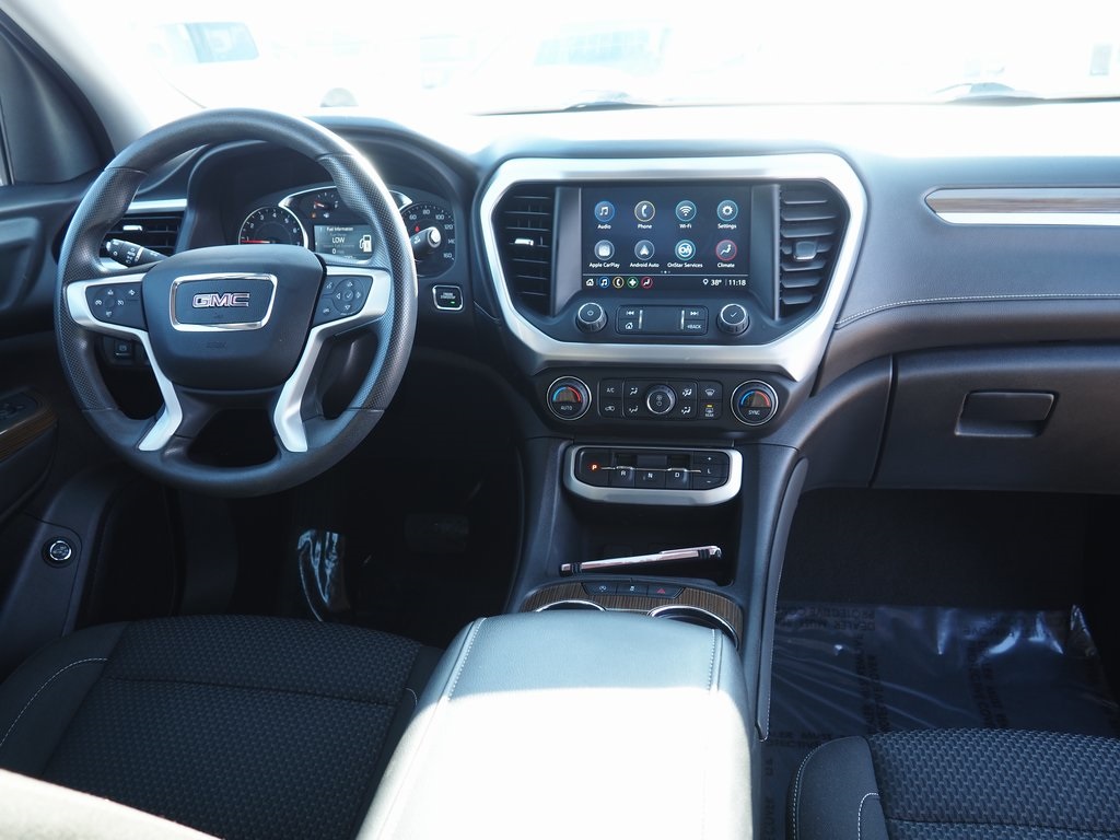 2023 GMC Acadia SLE Ebony Twilight Metallic 4D Sport Utility 2.0L Turbocharged 9-Speed Automatic FWD SLE This vehicle comes well equipped with Driver Convenience Package (120-Volt Power Outlet, 8-Way Power Driver Seat Adjuster, Brushed Aluminum Roof Rails, Hands Free Power Programmable Liftgate, Heated Driver & Front Passenger Seats, Power Driver Lumbar Control Seat Adjuster, and Remote Start), Preferred Equipment Group 3SA, 3.47 Final Drive Axle Ratio, 3rd row seats: split-bench, 4-Way Manual Driver Seat Adjuster, 4-Way Manual Passenger Seat Adjuster, 4-Wheel Disc Brakes, 6 Speakers, 6-Passenger (2-2-2 Seating Configuration), 6-Speaker Audio System Feature, ABS brakes, Air Conditioning, Alloy wheels, AM/FM radio: SiriusXM, Apple CarPlay/Android Auto, Auto High-beam Headlights, Automatic temperature control, Brake assist, Bumpers: body-color, Compass, Delay-off headlights, Driver door bin, Driver vanity mirror, Dual front impact airbags, Dual front side impact airbags, Electronic Stability Control, Emergency communication system: OnStar and GMC connected services capable, Four wheel independent suspension, Front anti-roll bar, Front Bucket Seats, Front Center Armrest, Front dual zone A/C, Front reading lights, Fully automatic headlights, Heated door mirrors, Illuminated entry, Knee airbag, Low tire pressure warning, Not Equipped w/Front & Rear Park Assist (060), Occupant sensing airbag, Outside temperature display, Overhead airbag, Overhead console, Panic alarm, Passenger door bin, Passenger vanity mirror, Power door mirrors, Power steering, Power windows, Premium Cloth Seat Trim, Radio data system, Radio: AM/FM w/8" Diagonal Multi-Touch Display, Rear air conditioning, Rear anti-roll bar, Rear reading lights, Rear window defroster, Rear window wiper, Remote keyless entry, Security system, SiriusXM Radio, Speed control, Speed-sensing steering, Spoiler, Steering wheel mounted audio controls, Tachometer, Telescoping steering wheel, Tilt steering wheel, Traction control, Trip computer, Turn signal indicator mirrors, Variably intermittent wipers, Voltmeter, Wheels: 18" Machined Aluminum w/Dark Accents, and Wireless Apple CarPlay/Wireless Android Auto.