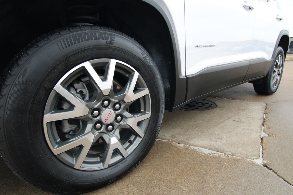 2023 GMC Acadia SLE Summit White 4D Sport Utility 2.0L Turbocharged 9-Speed Automatic AWD SLE This vehicle comes well equipped with Adventure Package (LPO) (1st & 2nd Row All-Weather Floor Liner (LPO), 3rd Row All-Weather Floor Liner (LPO), Integrated Cargo Liner (LPO), and Roof Rack Cross Rails (LPO)), Driver Convenience Package (120-Volt Power Outlet, 8-Way Power Driver Seat Adjuster, Brushed Aluminum Roof Rails, Hands Free Power Programmable Liftgate, Heated Driver & Front Passenger Seats, Power Driver Lumbar Control Seat Adjuster, and Remote Start), Preferred Equipment Group 3SA, 3 Years of OnStar & Connected Services Plan (DISC), 3.47 Final Drive Axle Ratio, 3rd row seats: split-bench, 4-Way Manual Driver Seat Adjuster, 4-Way Manual Passenger Seat Adjuster, 4-Wheel Disc Brakes, 6 Speakers, 6-Passenger (2-2-2 Seating Configuration), 6-Speaker Audio System Feature, ABS brakes, Air Conditioning, Alloy wheels, AM/FM radio: SiriusXM, Apple CarPlay/Android Auto, Auto High-beam Headlights, Automatic temperature control, Brake assist, Bumpers: body-color, Compass, Delay-off headlights, Driver door bin, Driver vanity mirror, Dual front impact airbags, Dual front side impact airbags, Electronic Stability Control, Emergency communication system: OnStar and GMC connected services capable, Four wheel independent suspension, Front anti-roll bar, Front Bucket Seats, Front Center Armrest, Front dual zone A/C, Front reading lights, Fully automatic headlights, Heated door mirrors, Illuminated entry, Knee airbag, Low tire pressure warning, Occupant sensing airbag, Outside temperature display, Overhead airbag, Overhead console, Panic alarm, Passenger door bin, Passenger vanity mirror, Power door mirrors, Power steering, Power windows, Premium Cloth Seat Trim, Radio data system, Radio: AM/FM w/8" Diagonal Multi-Touch Display, Rear air conditioning, Rear anti-roll bar, Rear reading lights, Rear window defroster, Rear window wiper, Remote keyless entry, Security system, SiriusXM Radio, Speed control, Speed-sensing steering, Spoiler, Steering wheel mounted audio controls, Tachometer, Telescoping steering wheel, Tilt steering wheel, Traction control, Trip computer, Turn signal indicator mirrors, Variably intermittent wipers, Voltmeter, Wheels: 18" Machined Aluminum w/Dark Accents, and Wireless Apple CarPlay/Wireless Android Auto.