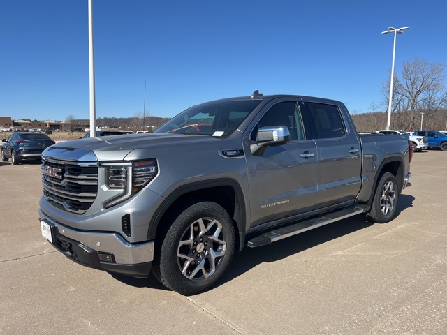 Clean CARFAX. Navigation, Moonroof, Leather, Heated and cooled seats, Heated seats, Heated steering wheel, XM SIRIUS Radio, Push button start, Local trade, Non-smoker, Shottenkirk Certified, Fully Serviced and Detailed, Bluetooth, Rear Back Up Camera, Power driver's seat, Power passenger seat, Memory seats, Blind spot indicator, Tow package, Safety Package, Convenience Package, Apple Car Play, LCD display screen, Onstar, Balance of factory warranty, Free Carfax history report, Steering Wheel Controls, Alloy Wheels, Leather Interior, Power Sunroof/Moonroof, Lane Monitor, Sierra 1500 SLT Premium Plus, 4D Crew Cab, 3.0L I6, 10-Speed Automatic, 4WD, Sterling Metallic, Jet Black w/Perf Leather-Appointed Front Outboard Seat Trim, 10-Way Power Driver Seat Adjuster w/Lumbar, 10-Way Power Passenger Seat Adjuster w/Lumbar, 120-Volt Bed Mounted Power Outlet, 120-Volt Instrument Panel Power Outlet, 170 Amp Alternator, 2 Charge/Data USB Ports, 2 Charge/Data USB Ports Inside Center Console, 2 Type-C Charge-Only Rear USB Ports, 20" Polished Aluminum Wheels, 3.23 Rear Axle Ratio, 4-Wheel Disc Brakes, 6 Speakers, 6-Speaker Audio System Feature, ABS brakes, Adaptive Cruise Control, Air Conditioning, All-Weather Floor Liner (LPO), Alloy wheels, AM/FM radio, Apple CarPlay/Android Auto, Auto High-beam Headlights, Auto-dimming door mirrors, Auto-dimming Rear-View mirror, Auto-Locking Rear Differential, Automatic Emergency Braking, Automatic temperature control, Auxiliary External Transmission Oil Cooler, Brake assist, Buckle to Drive, Bumpers: chrome, Chrome Header & Chrome Grille Insert Bars, Chrome Wheel To Wheel Assist Steps, Color-Keyed Carpeting Floor Covering, Compass, Deep-Tinted Glass, Delay-off headlights, Driver door bin, Driver Memory, Driver vanity mirror, Dual Exhaust System, Dual front impact airbags, Dual front side impact airbags, Electric Rear-Window Defogger, Electrical Steering Column Lock, Electronic Precision Shift, Electronic stabiliy control, Emergency communication system: OnStar and GMC connected services capable, Engine Block Heater, Floor-Mounted Center Console, Following Distance Indicator, Forward Collision Alert, Front anti-roll bar, Front Bucket Seats, Front Center Armrest w/Storage, Front dual zone A/C, Front fog lights, Front Frame-Mounted Black Recovery Hooks, Front License Plate Kit, Front Pedestrian Braking, Front Rainsensing Wipers, Front reading lights, Front wheel independent suspension, Fully automatic headlights, GMC Connected Access Capable, HD Rear Vision Camera, HD Surround Vision, Heated 2nd Row Outboard Seats, Heated door mirrors, Heated front seats, Heated steering wheel, Heavy-Duty Air Filter, High Capacity Suspension Package, Hill Descent Control, Hitch Guidance, Hitch Guidance w/Hitch View, Illuminated entry, In-Vehicle Trailering App, Integrated Trailer Brake Controller, IntelliBeam Automatic High Beam On/Off, Keyless Open & Start, Lane Keep Assist w/Lane Departure Warning, LED Cargo Area Lighting, Low tire pressure warning, Manual Tilt-Wheel & Telescoping Steering Column, Memory seat, Navigation System, Occupant sensing airbag, Off-Road Suspension, OnStar & GMC Connected Services Capable, Outside temperature display, Overhead airbag, Overhead console, Panic alarm, Passenger door bin, Passenger vanity mirror, Perf Leather-Appointed Front Outboard Seat Trim, Perimeter Lighting, Power Door Locks, Power door mirrors, Power driver seat, Power Front Passenger Windows w/Express Up/Down, Power Front Windows w/Driver Express Up/Down, Power passenger seat, Power Rake & Telescoping Steering Column, Power Rear Windows w/Express Down, Power Sliding Rear Window w/Rear Defogger, Power steering, Power Sunroof, Power windows, Preferred Equipment Group 4SA, Premium audio system: GMC Infotainment System, Premium Bose 7-Speaker Sound System, ProGrade Trailering System, Push Button Start, Radio data system, Radio: Premium GMC Infotainment Audio System, Rain sensing wipers, Rear Cross Traffic Braking, Rear Pedestrian D