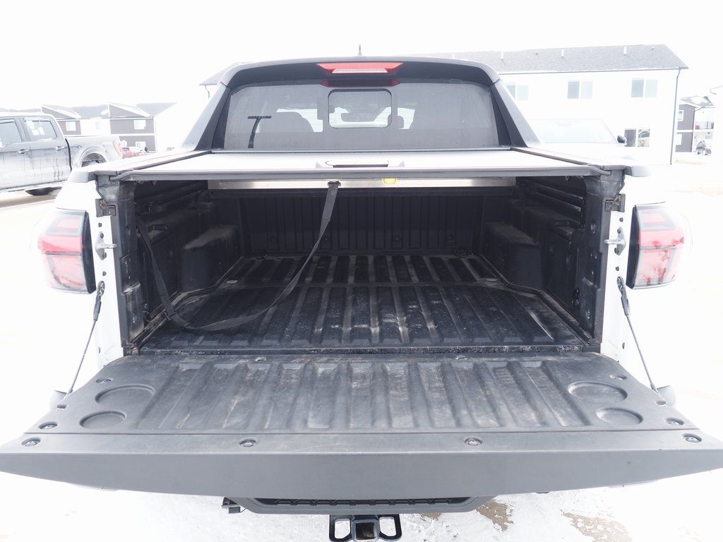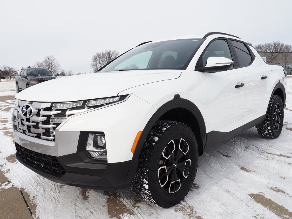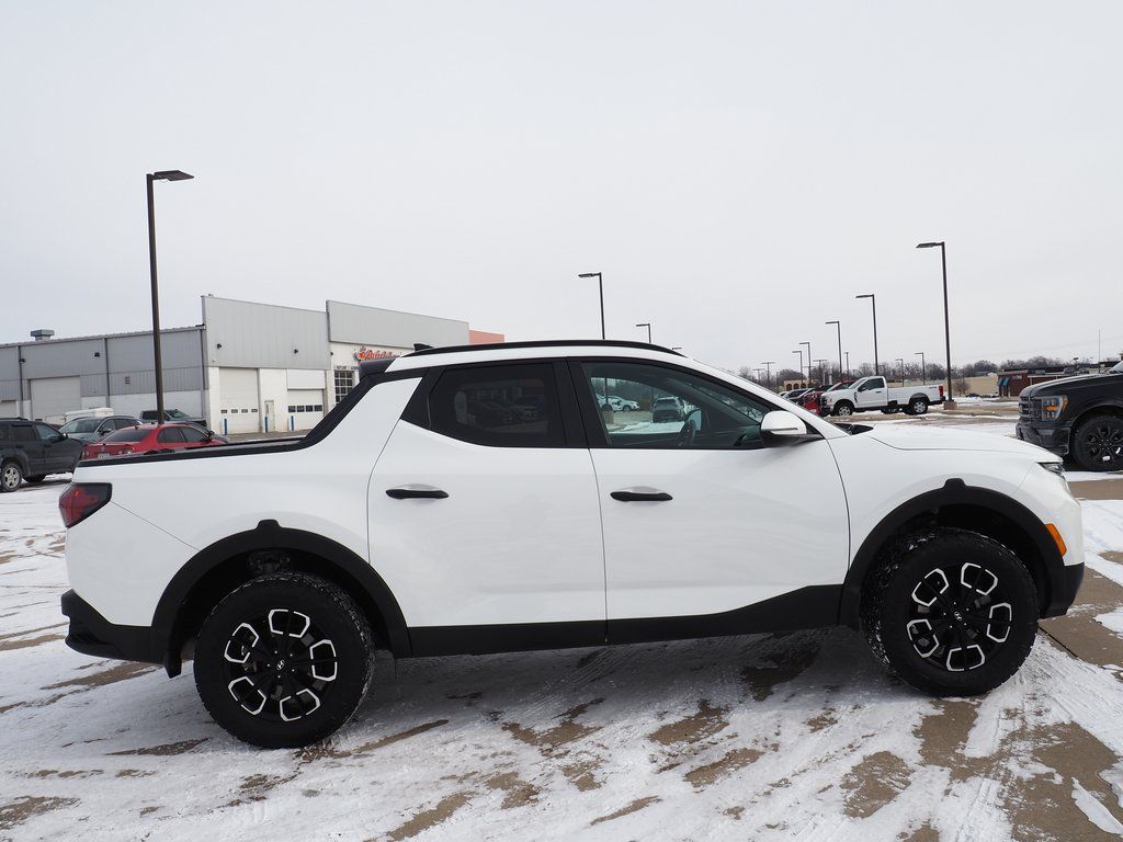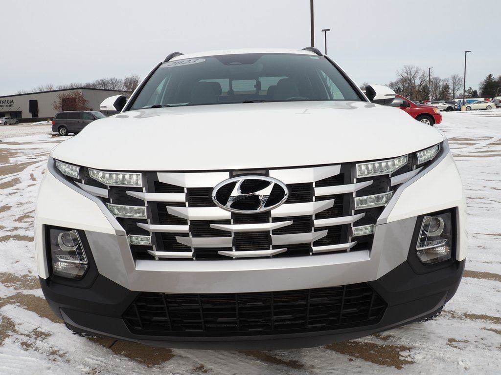 2023 Hyundai Santa Cruz SEL Atlas White 4D Crew Cab 2.5L I4 8-Speed Automatic with SHIFTRONIC AWD SEL This vehicle comes well equipped with Activity Package (10.25" Digital Instrument Cluster, 115V AC Power Inverter in Bed, 2 LED Bed Lighting, Conventional Power Sunroof, Dual C-Channel Utility Tracks on Bed Side, Integrated Tonneau Cover, LED Front & Rear Maplights, Option Group 02, Rear Sliding Glass Window w/Rear Defroster, Roof Side Rails, and Wireless Phone Charger (15W)), 18" x 7.5J Alloy Wheels, 4-Wheel Disc Brakes, 4.081 Axle Ratio, 6 Speakers, ABS brakes, Air Conditioning, Alloy wheels, AM/FM radio: SiriusXM, Apple CarPlay & Android Auto, Auto High-beam Headlights, Auto-leveling suspension, Brake assist, Bumpers: body-color, Carpeted Floor Mats, Delay-off headlights, Driver door bin, Driver vanity mirror, Dual front impact airbags, Dual front side impact airbags, Electronic Stability Control, Emergency communication system: Blue Link Connected Car Service (3-year complimentary subscription), Exterior Parking Camera Rear, First Aid Kit, Four wheel independent suspension, Front anti-roll bar, Front Bucket Seats, Front Center Armrest, Front reading lights, Fully automatic headlights, Heated door mirrors, Heated Front Bucket Seats, Heated front seats, Illuminated entry, Low tire pressure warning, Mudguards, Occupant sensing airbag, Outside temperature display, Overhead airbag, Overhead console, Panic alarm, Passenger door bin, Passenger vanity mirror, Power door mirrors, Power driver seat, Power steering, Power windows, Radio data system, Radio: AM/FM/HD Audio System, Rear anti-roll bar, Rear step bumper, Rear window defroster, Remote keyless entry, Roof Rack Cross Rails, Security system, Speed control, Speed-sensing steering, Split folding rear seat, Spoiler, Stain & Odor Resistant Cloth Seat Trim, Steering wheel mounted audio controls, Tachometer, Telescoping steering wheel, Tilt steering wheel, Traction control, Trip computer, Turn signal indicator mirrors, and Variably intermittent wipers.