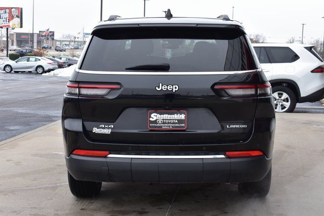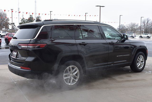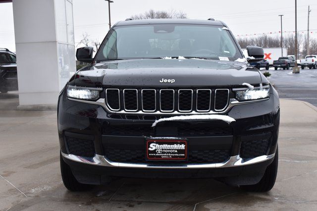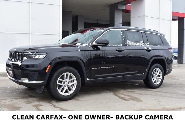 2023 Jeep Grand Cherokee L Diamond Black Crystal Pearlcoat Laredo 3.6L V6 24V VVT 8-Speed Automatic 4WD Clean Carfax, One Owner, Backup Camera, Grand Cherokee L Laredo, 8-Speed Automatic, 4WD, Diamond Black Crystal Pearlcoat, Black Cloth, 3rd row seats: split-bench, 6 Speakers, ABS brakes, Air Conditioning, Alloy wheels, Automatic temperature control, Bumpers: body-color, Cloth Seats, Driver door bin, Driver vanity mirror, Front Bucket Seats, Front Center Armrest w/Storage, Front dual zone A/C, Front License Plate Bracket, Front reading lights, Fully automatic headlights, Heated door mirrors, Illuminated entry, Low tire pressure warning, Occupant sensing airbag, Outside temperature display, Overhead console, ParkView Rear Back-Up Camera, Passenger door bin, Passenger vanity mirror, Power door mirrors, Power driver seat, Power steering, Power windows, Radio data system, Radio: Uconnect 5 w/8.4" Display, Rear air conditioning, Rear window defroster, Rear window wiper, Reclining 3rd row seat, Remote keyless entry, Security system, Speed control, Split folding rear seat, Spoiler, Steering wheel mounted audio controls, Telescoping steering wheel, Tilt steering wheel, Traction control.