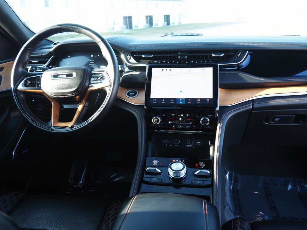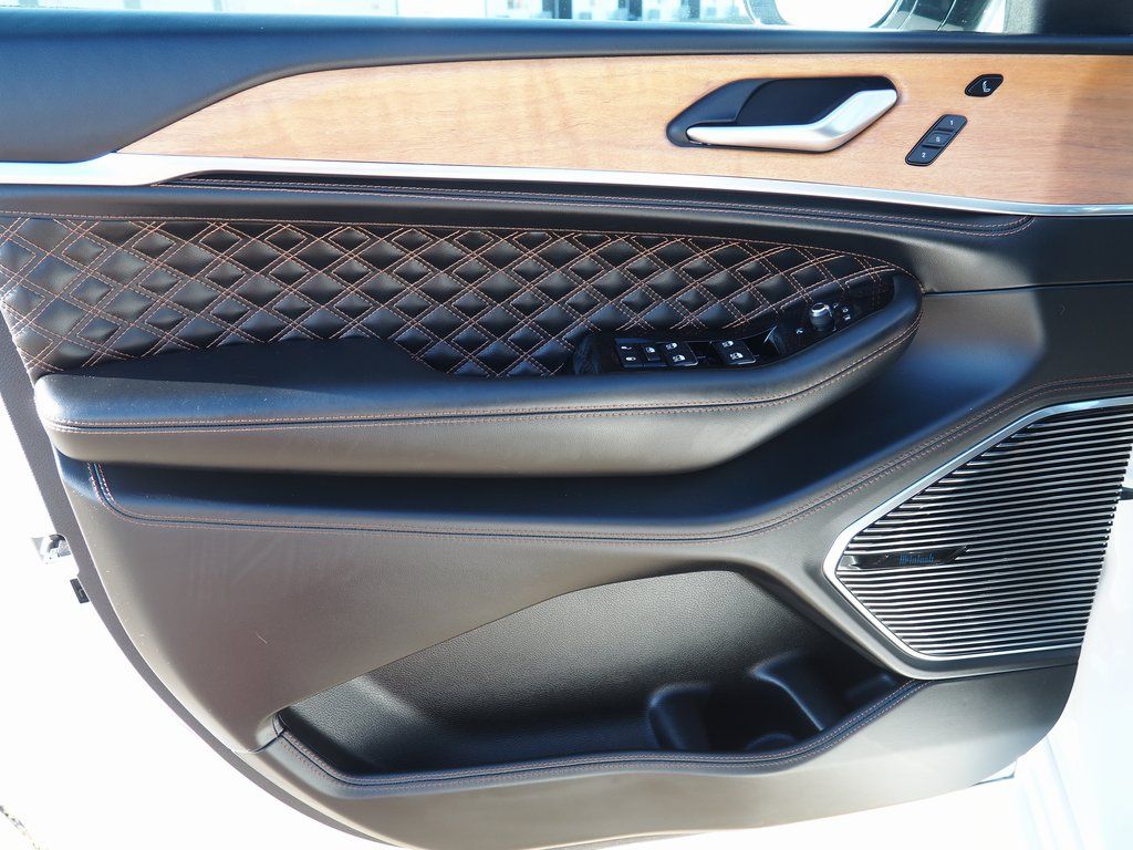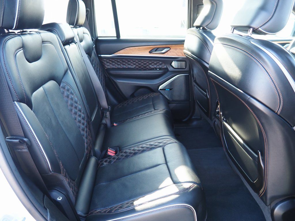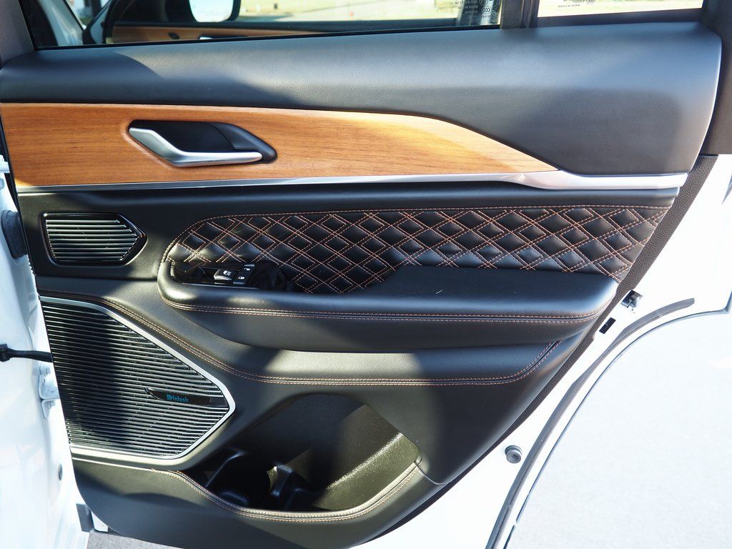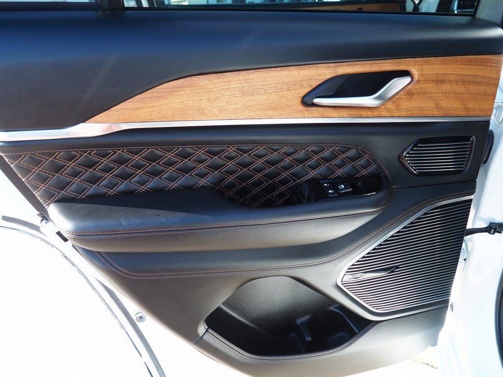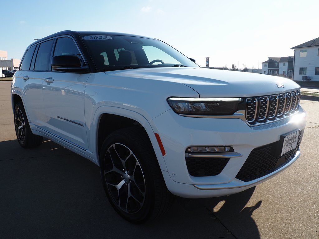 2023 Jeep Grand Cherokee Summit Reserve 4xe Bright White Clearcoat 4D Sport Utility 2.0L I4 DOHC 8-Speed Automatic 4WD Summit Reserve 4xe This vehicle comes well equipped with Quick Order Package 27U Summit Reserve (Deluxe Headliner, Palermo Leather Door Trim, Palermo Leather Seats, Summit Reserve, Summit Reserve Badge, Ventilated Rear Seats, and Wheels: 21" x 9" Machined Face/Painted Aluminum), Two Tone Paint Group, 19 Speakers, 3.70 Rear Axle Ratio, 4-Wheel Disc Brakes, ABS brakes, Adaptive suspension, Air Conditioning, Alloy wheels, AM/FM radio: SiriusXM with 360L, Anti-whiplash front head restraints, Audio memory, Auto High-beam Headlights, Auto-dimming door mirrors, Auto-dimming Rear-View mirror, Auto-leveling suspension, Automatic temperature control, Brake assist, Bumpers: body-color, Compass, Delay-off headlights, Driver door bin, Driver vanity mirror, Dual front impact airbags, Dual front side impact airbags, Electronic Stability Control, Four wheel independent suspension, Front anti-roll bar, Front Bucket Seats, Front Center Armrest w/Storage, Front dual zone A/C, Front fog lights, Front License Plate Bracket, Front reading lights, Fully automatic headlights, Garage door transmitter, Genuine wood dashboard insert, Genuine wood door panel insert, Heated door mirrors, Heated front seats, Heated rear seats, Heated steering wheel, Heavy Duty Suspension, Illuminated entry, Knee airbag, Leather steering wheel, Low tire pressure warning, Memory seat, Nappa Leather Seats, Navigation System, Occupant sensing airbag, Outside temperature display, Overhead airbag, Overhead console, Panic alarm, Passenger door bin, Passenger vanity mirror, Power door mirrors, Power driver seat, Power Liftgate, Power moonroof, Power passenger seat, Power steering, Power windows, Radio data system, Radio: Uconnect 5 Nav w/10.1" Display, Rain sensing wipers, Rear air conditioning, Rear anti-roll bar, Rear dual zone A/C, Rear reading lights, Rear seat center armrest, Rear window defroster, Rear window wiper, Remote keyless entry, Security system, Speed control, Speed-Sensitive Wipers, Split folding rear seat, Spoiler, Steering wheel memory, Steering wheel mounted audio controls, Tachometer, Telescoping steering wheel, Tilt steering wheel, Traction control, Trip computer, Turn signal indicator mirrors, Variably intermittent wipers, Ventilated front seats, Voltmeter, and Wheels: 20" x 8.5" Fully Painted Aluminum Silver.