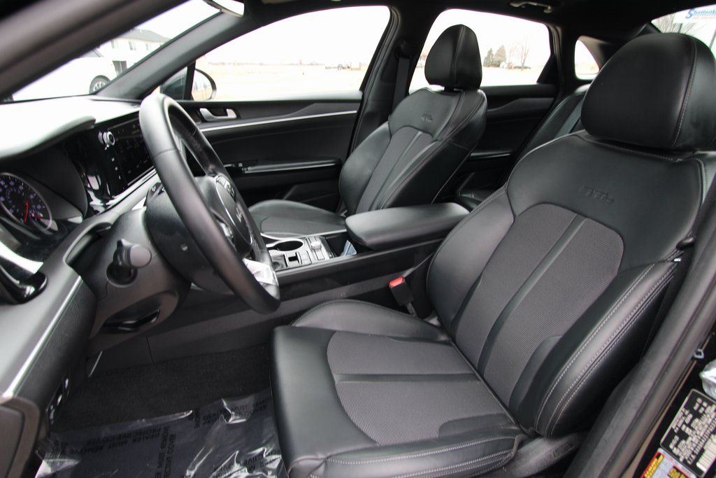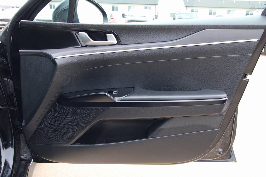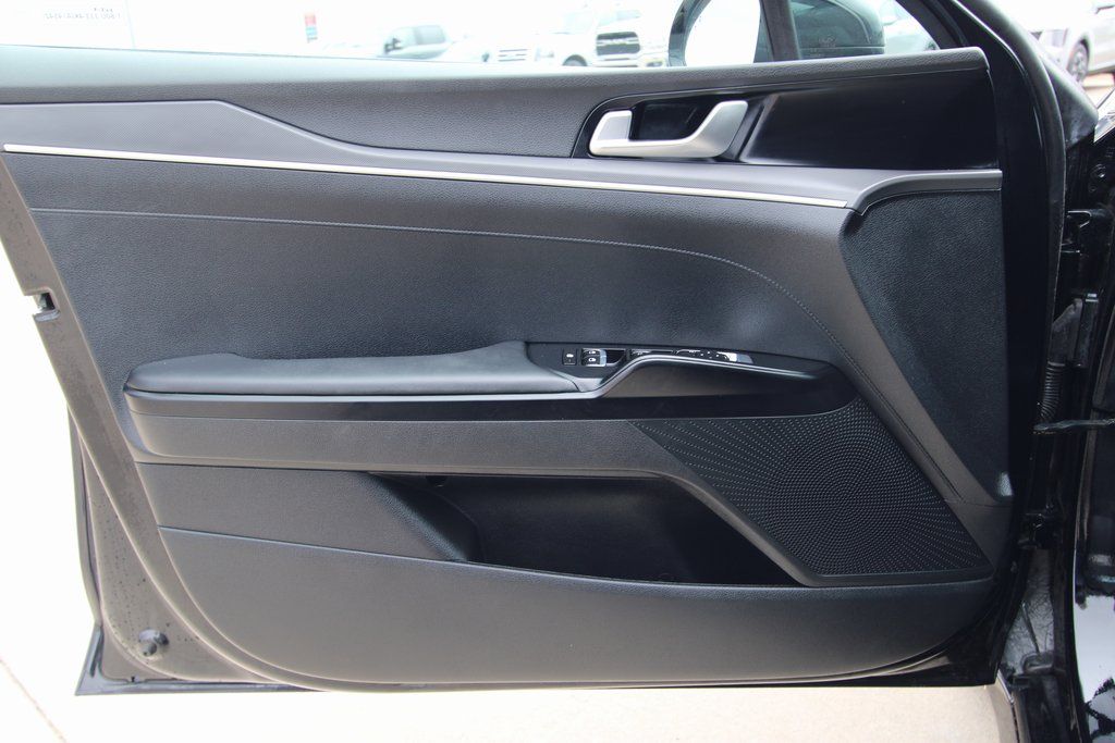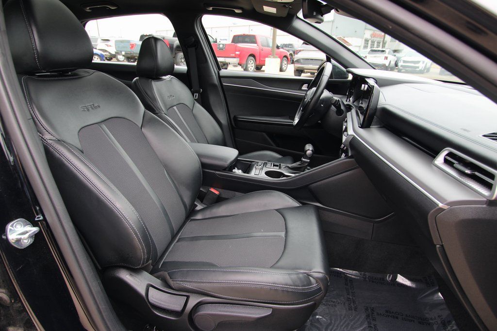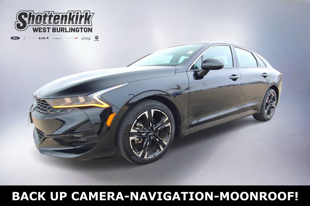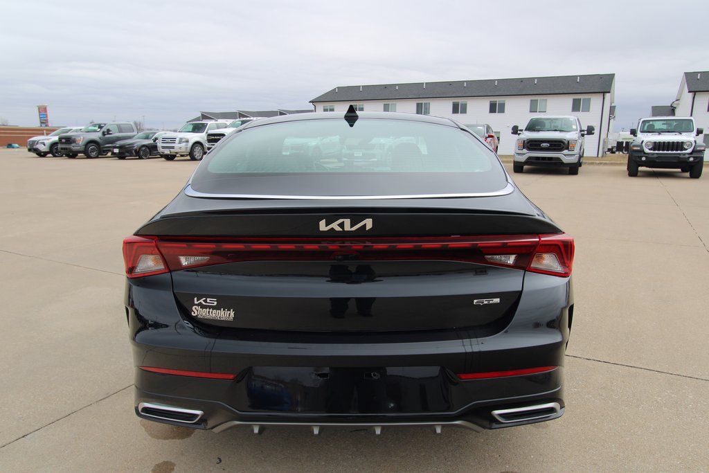 2023 Kia K5 GT-Line Ebony Black 4D Sedan 1.6L I4 DGI Turbocharged DOHC 16V LEV3-ULEV70 180hp 8-Speed Automatic FWD GT-Line This vehicle comes well equipped with GT-Line Panoramic Sunroof Package (LED Interior Lighting and Panoramic Sunroof), GT-Line Premium Package (Forward Collision Avoidance-Assist, Highway Driving Assist, LED Projection Headlamps, and Smart Cruise Control w/Stop & Go), 4-Wheel Disc Brakes, 6 Speakers, ABS brakes, Air Conditioning, Alloy wheels, AM/FM radio: SiriusXM, Apple CarPlay & Android Auto, Auto High-beam Headlights, Automatic temperature control, Brake assist, Bumpers: body-color, Carpeted Floor Mats, Cloth/SynTex Seat Trim, Delay-off headlights, Driver door bin, Driver vanity mirror, Dual front impact airbags, Dual front side impact airbags, EC Mirror w/Homelink, Electronic Stability Control, Four wheel independent suspension, Front anti-roll bar, Front Bucket Seats, Front Center Armrest, Front dual zone A/C, Front fog lights, Front reading lights, Fully automatic headlights, Heated door mirrors, Illuminated entry, Knee airbag, Low tire pressure warning, Navigation System, Occupant sensing airbag, Outside temperature display, Overhead airbag, Overhead console, Panic alarm, Passenger door bin, Passenger vanity mirror, Power door mirrors, Power driver seat, Power steering, Power windows, Radio data system, Radio: AM/FM/MP3 Audio System, Rear anti-roll bar, Rear Bumper Applique, Rear seat center armrest, Rear side impact airbag, Rear window defroster, Remote keyless entry, Security system, Speed control, Speed-sensing steering, Split folding rear seat, Spoiler, Sport steering wheel, Steering wheel mounted audio controls, Tachometer, Telescoping steering wheel, Tilt steering wheel, Traction control, Trip computer, Turn signal indicator mirrors, Variably intermittent wipers, and Wheels: 18" Gloss Black Machined Finish Alloy.