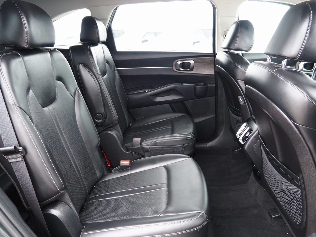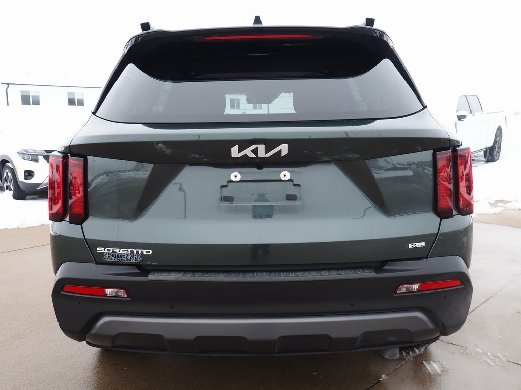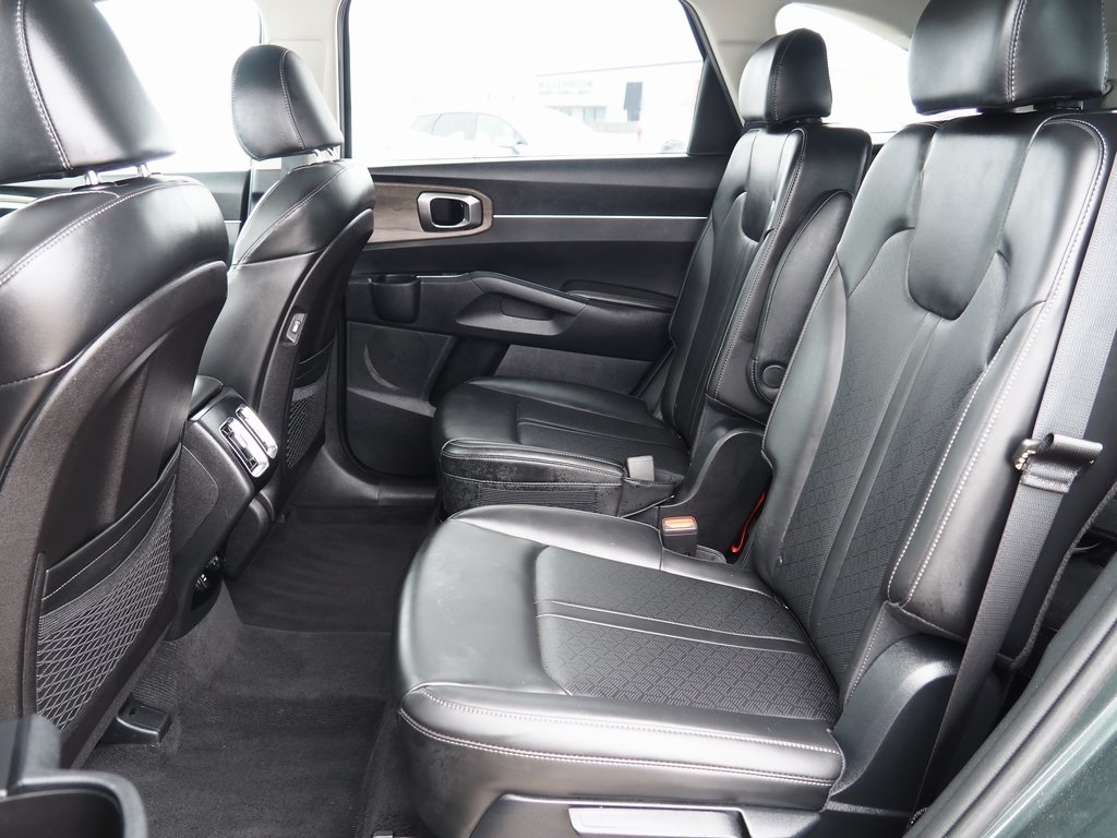 2023 Kia Sorento X-Line EX Aruba Green 4D Sport Utility 2.5L I4 DGI Turbocharged DOHC 16V LEV3-ULEV70 281hp 8-Speed DCT AWD X-Line EX This vehicle comes well equipped with 3.316 Axle Ratio, 3rd row seats: split-bench, 4-Wheel Disc Brakes, 6 Speakers, ABS brakes, Air Conditioning, Alloy wheels, AM/FM radio: SiriusXM, Apple CarPlay & Android Auto, Auto High-beam Headlights, Auto-dimming Rear-View mirror, Automatic temperature control, Brake assist, Bumpers: body-color, Carpet Floor Mats, Delay-off headlights, Driver door bin, Driver vanity mirror, Dual front impact airbags, Dual front side impact airbags, EC Mirror w/HomeLink Plug-N-Play, Electronic Stability Control, Emergency communication system, Exterior Parking Camera Rear, Four wheel independent suspension, Front anti-roll bar, Front Bucket Seats, Front Center Armrest, Front dual zone A/C, Front fog lights, Front reading lights, Fully automatic headlights, Heated door mirrors, Heated Front Bucket Seats, Heated front seats, Illuminated entry, Knee airbag, Leather Shift Knob, Leather steering wheel, Low tire pressure warning, Navigation System, Occupant sensing airbag, Outside temperature display, Overhead airbag, Overhead console, Panic alarm, Passenger door bin, Passenger vanity mirror, Power door mirrors, Power driver seat, Power Liftgate, Power moonroof, Power passenger seat, Power steering, Power windows, Radio data system, Radio: AM/FM Audio System, Rear air conditioning, Rear anti-roll bar, Rear Bumper Protector, Rear reading lights, Rear window defroster, Rear window wiper, Remote keyless entry, Roof rack: rails only, Security system, Smart Key w/ Push Button and Remote Start, Speed control, Speed-sensing steering, Split folding rear seat, Spoiler, Steering wheel mounted audio controls, SynTex Artificial Leather Seat Trim, Tachometer, Telescoping steering wheel, Tilt steering wheel, Traction control, Trip computer, Turn signal indicator mirrors, Variably intermittent wipers, and Wheels: 8.5J x 20" Matte Gray Alloy.