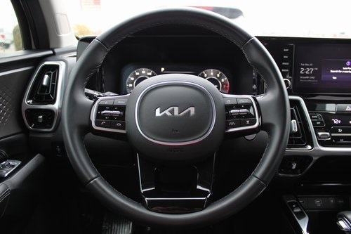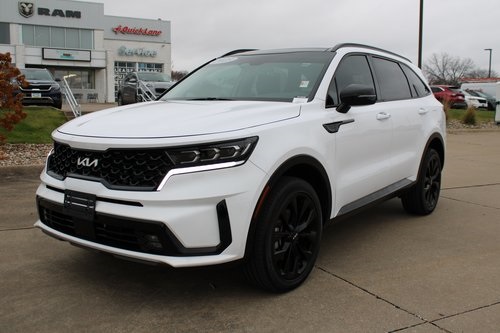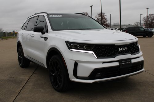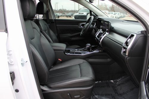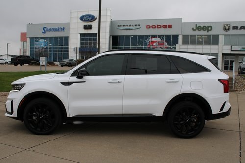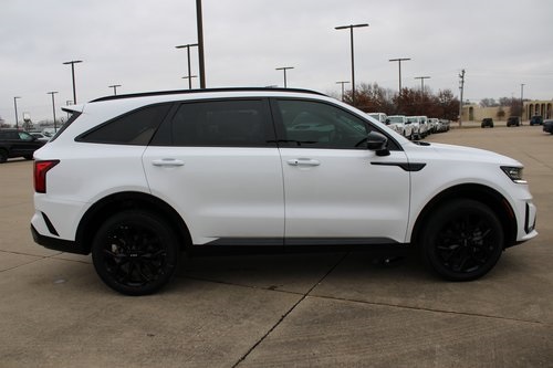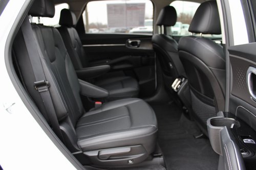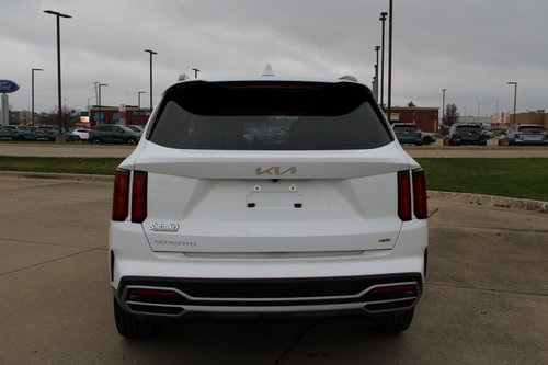 2023 Kia Sorento SX Glacial White Pearl 4D Sport Utility 2.5L I4 DGI Turbocharged DOHC 16V LEV3-ULEV70 281hp 8-Speed DCT AWD SX This vehicle comes well equipped with 3.316 Axle Ratio, 3rd row seats: split-bench, 4-Wheel Disc Brakes, 6 Speakers, ABS brakes, Air Conditioning, Alloy wheels, AM/FM radio: SiriusXM, Apple CarPlay & Android Auto, Auto High-beam Headlights, Auto-dimming Rear-View mirror, Automatic temperature control, Brake assist, Bumpers: body-color, Carpet Floor Mats, Delay-off headlights, Driver door bin, Driver vanity mirror, Dual front impact airbags, Dual front side impact airbags, EC Mirror w/HomeLink Plug-N-Play, Electronic Stability Control, Emergency communication system, Exterior Parking Camera Rear, Four wheel independent suspension, Front anti-roll bar, Front Bucket Seats, Front Center Armrest, Front dual zone A/C, Front fog lights, Front reading lights, Fully automatic headlights, Heated door mirrors, Heated Front Bucket Seats, Heated front seats, Illuminated entry, Illuminated Hatch Sill Plate, Knee airbag, Leather steering wheel, Low tire pressure warning, Navigation System, Occupant sensing airbag, Outside temperature display, Overhead airbag, Overhead console, Panic alarm, Passenger door bin, Passenger vanity mirror, Power door mirrors, Power driver seat, Power Liftgate, Power moonroof, Power passenger seat, Power steering, Power windows, Radio data system, Radio: AM/FM Audio System, Rain sensing wipers, Rear air conditioning, Rear anti-roll bar, Rear reading lights, Rear window defroster, Rear window wiper, Remote keyless entry, Roof rack: rails only, Security system, Smart Key w/ Push Button and Remote Start, Speed control, Speed-sensing steering, Split folding rear seat, Spoiler, Steering wheel mounted audio controls, SynTex Artificial Leather Seat Trim, Tachometer, Telescoping steering wheel, Tilt steering wheel, Traction control, Trip computer, Turn signal indicator mirrors, Variably intermittent wipers, and Wheels: 8.5J x 20" Gloss Black Alloy.