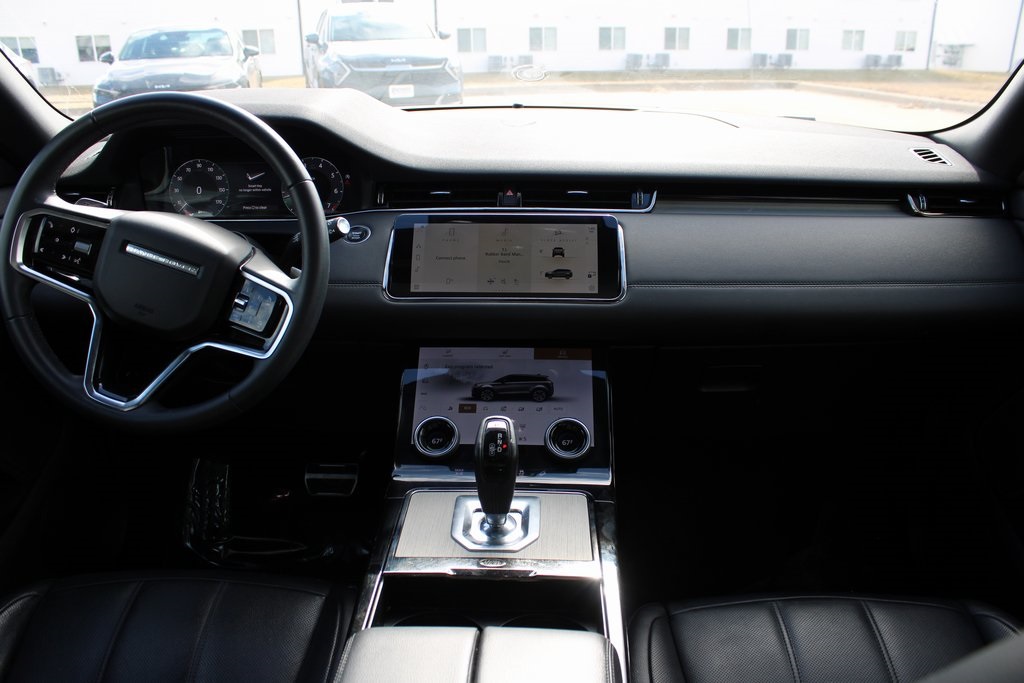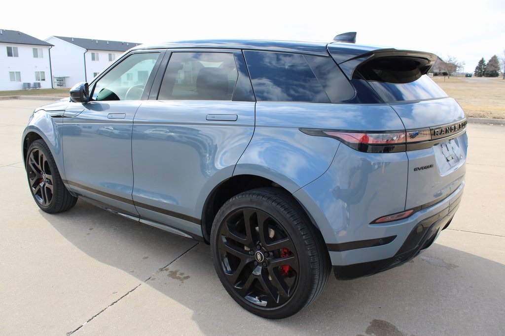 2023 Land Rover Range Rover Evoque R-Dynamic SE Nolita Gray Metallic 4D Sport Utility 2.0L Turbocharged 9-Speed Automatic AWD R-Dynamic SE This vehicle comes well equipped with 12 Speakers, 12-Way Heated Front Driver Seats w/Memory, 20" Wheels, 4-Wheel Disc Brakes, 4.544 Axle Ratio, 400 Watt Meridian Sound System, ABS brakes, Air Conditioning, Alloy wheels, AM/FM radio: SiriusXM, Apple CarPlay & Android Auto, Auto High-beam Headlights, Auto-dimming door mirrors, Auto-dimming Rear-View mirror, Automatic temperature control, Brake assist, Bumpers: body-color, Compass, Delay-off headlights, Driver door bin, Driver vanity mirror, Dual front impact airbags, Dual front side impact airbags, DuoLeather Seat Trim, Electronic Stability Control, Emergency communication system: InControl Protect, Exterior Parking Camera Rear, Four wheel independent suspension, Front anti-roll bar, Front Bucket Seats, Front Center Armrest, Front dual zone A/C, Front reading lights, Fully automatic headlights, Heated door mirrors, Heated front seats, Illuminated entry, Leather Shift Knob, Low tire pressure warning, Memory seat, Navigation system: InControl Navigation Pro, Occupant sensing airbag, Outside temperature display, Overhead airbag, Overhead console, Panic alarm, Passenger door bin, Passenger vanity mirror, Power door mirrors, Power driver seat, Power Liftgate, Power passenger seat, Power steering, Power windows, Radio data system, Radio: PIVI Pro w/10" Touchscreen, Rain sensing wipers, Rear anti-roll bar, Rear fog lights, Rear reading lights, Rear seat center armrest, Rear window defroster, Rear window wiper, Remote keyless entry, Security system, Speed control, Speed-sensing steering, Speed-Sensitive Wipers, Split folding rear seat, Spoiler, Steering wheel mounted audio controls, Tachometer, Telescoping steering wheel, Tilt steering wheel, Traction control, Trip computer, Turn signal indicator mirrors, Variably intermittent wipers, and Wheels: 20" Gloss Silver (Style 5079)
