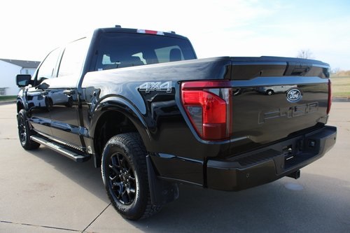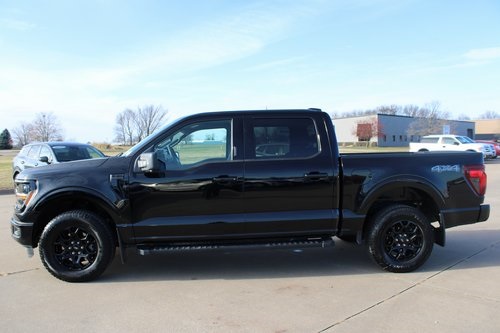 2024 Ford F-150 XLT Sport Agate Black Metallic 4D SuperCrew 3.5L V6 EcoBoost 10-Speed Automatic 4WD XLT This vehicle comes well equipped with 3.31 Axle Ratio, 4-Wheel Disc Brakes, 6 Speakers, ABS brakes, Air Conditioning, Alloy wheels, AM/FM radio: SiriusXM with 360L, Auto High-beam Headlights, Auto-dimming Rear-View mirror, Automatic temperature control, Brake assist, Bumpers: chrome, Chrome wheels, Cloth 40/20/40 Front Seat, Compass, Delay-off headlights, Driver door bin, Driver vanity mirror, Dual front impact airbags, Dual front side impact airbags, Electronic Stability Control, Emergency communication system: SYNC 4 911 Assist, Front anti-roll bar, Front Center Armrest w/Storage, Front dual zone A/C, Front fog lights, Front reading lights, Front wheel independent suspension, Fully automatic headlights, Heated door mirrors, Illuminated entry, Low tire pressure warning, Navigation system: Connected Navigation, Occupant sensing airbag, Outside temperature display, Overhead airbag, Overhead console, Panic alarm, Passenger door bin, Passenger vanity mirror, Power door mirrors, Power driver seat, Power steering, Power windows, Radio data system, Radio: AM/FM SiriusXM w/360L, Rear reading lights, Rear step bumper, Rear window defroster, Remote keyless entry, Security system, Speed control, Split folding rear seat, Steering wheel mounted audio controls, SYNC 4 w/Enhanced Voice Recognition, Tachometer, Telescoping steering wheel, Tilt steering wheel, Traction control, Trip computer, Variably intermittent wipers, Voltmeter, and Wheels: 18" Chrome-Like PVD.