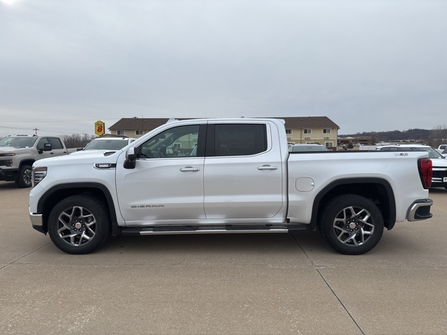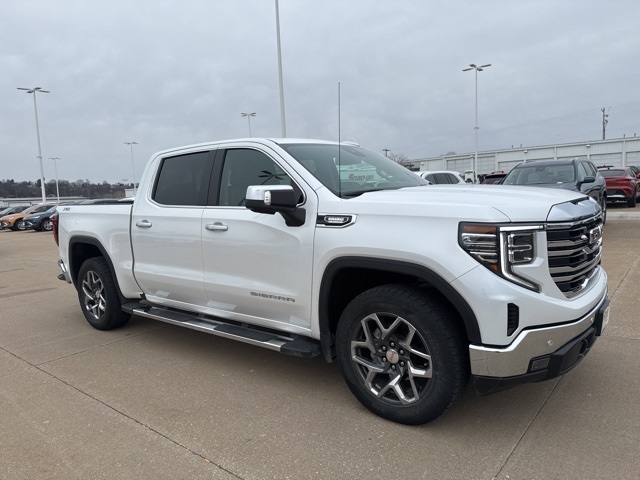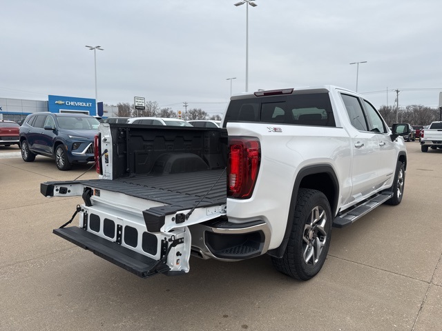 CARFAX One-Owner. Navigation, Leather, Heated and cooled seats, Heated seats, Heated steering wheel, XM SIRIUS Radio, Push button start, Local trade, Shottenkirk Certified, Fully Serviced and Detailed, Bluetooth, Rear Back Up Camera, Power driver's seat, Power passenger seat, Memory seats, Blind spot indicator, Tow package, Safety Package, Convenience Package, Apple Car Play, Onstar, Balance of factory warranty, Free Carfax history report, Steering Wheel Controls, Alloy Wheels, Leather Interior, Lane Monitor, Sierra 1500 SLT, 4D Crew Cab, 3.0L I6, 10-Speed Automatic, 4WD, White Frost Tricoat, Jet Black w/Perf Leather-Appointed Front Outboard Seat Trim, 10-Way Power Driver Seat Adjuster w/Lumbar, 10-Way Power Passenger Seat Adjuster w/Lumbar, 120-Volt Bed Mounted Power Outlet, 120-Volt Interior Power Outlet, 170 Amp Alternator, 2 Charge/Data USB Ports, 2 Charge/Data USB Ports Inside Center Console, 2 Type-C Charge-Only Rear USB Ports, 20" Polished Aluminum Wheels, 3.23 Rear Axle Ratio, 4-Wheel Disc Brakes, 6 Speakers, 6-Speaker Audio System Feature, ABS brakes, Adaptive Cruise Control, Air Conditioning, All-Weather Floor Liner (LPO), Alloy wheels, AM/FM radio: SiriusXM with 360L, Apple CarPlay/Android Auto, Auto High-beam Headlights, Auto-dimming door mirrors, Auto-dimming Rear-View mirror, Auto-Locking Rear Differential, Automatic Emergency Braking, Automatic temperature control, Auxiliary External Transmission Oil Cooler, Brake assist, Buckle to Drive, Bumpers: chrome, Chrome Header & Chrome Grille Insert Bars, Chrome Wheel To Wheel Assist Steps, Color-Keyed Carpeting Floor Covering, Compass, Deep-Tinted Glass, Delay-off headlights, Driver door bin, Driver Memory, Driver vanity mirror, Dual Exhaust System, Dual front impact airbags, Dual front side impact airbags, Electric Rear-Window Defogger, Electronic Precision Shift, Electronic stabiliy control, Engine Block Heater, Floor-Mounted Center Console, Following Distance Indicator, Forward Collision Alert, Front anti-roll bar, Front Bucket Seats, Front Center Armrest w/Storage, Front dual zone A/C, Front fog lights, Front Frame-Mounted Black Recovery Hooks, Front License Plate Kit, Front Pedestrian Braking, Front Rain-Sensing Wipers, Front reading lights, Front wheel independent suspension, Fully automatic headlights, GMC Connected Access Capable, HD Rear Vision Camera, HD Surround Vision, Heated 2nd Row Outboard Seats, Heated door mirrors, Heated Driver & Front Outboard Passenger Seating, Heated front seats, Heated steering wheel, Heavy-Duty Air Filter, High Capacity Suspension Package, Hill Descent Control, Hitch Guidance, Hitch View, Illuminated entry, In-Vehicle Trailering System App, Integrated Trailer Brake Controller, IntelliBeam Automatic High Beam On/Off, Keyless Open & Start, Lane Keep Assist w/Lane Departure Warning, LED Cargo Area Lighting, Low tire pressure warning, Manual Tilt-Wheel & Telescoping Steering Column, Memory seat, Navigation System, Occupant sensing airbag, Off-Road Suspension, OnStar & GMC Connected Services Capable, Outside temperature display, Overhead airbag, Overhead console, Panic alarm, Passenger door bin, Passenger vanity mirror, Perf Leather-Appointed Front Outboard Seat Trim, Perimeter Lighting, Power Door Locks, Power door mirrors, Power driver seat, Power Front Passenger Windows w/Express Up/Down, Power Front Windows w/Driver Express Up/Down, Power passenger seat, Power Rake & Telescoping Steering Column, Power Rear Windows w/Express Down, Power Sliding Rear Window w/Rear Defogger, Power steering, Power windows, Preferred Equipment Group 4SA, Premium audio system: GMC Infotainment System, Premium Bose 7-Speaker Sound System, ProGrade Trailering System, Push Button Start, Radio data system, Radio: Premium GMC Infotainment Audio System, Rain sensing wipers, Rear Cross Traffic Braking, Rear Pedestrian Detection, Rear reading lights, Rear seat center armrest, Rear step bumper, Rear Wheelhouse Liners, Rear window defroster, Remote keyless entry,