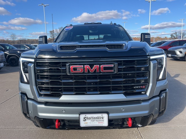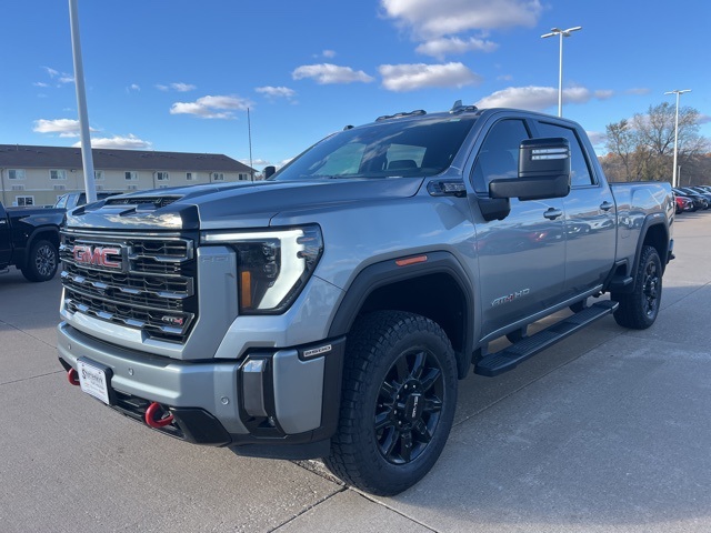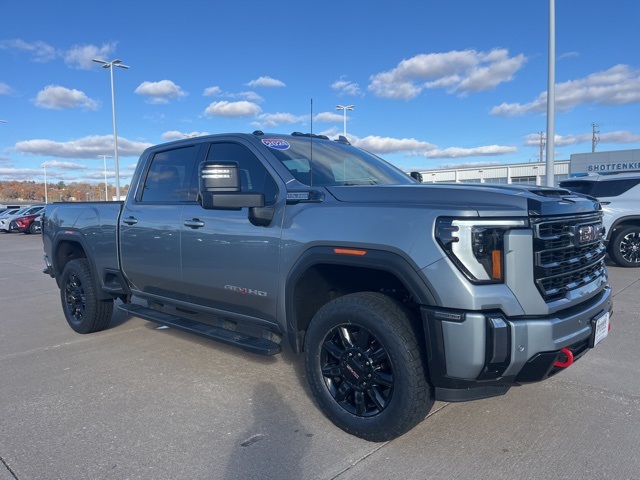 CARFAX One-Owner. Clean CARFAX. Navigation, Moonroof, Leather, Heated and cooled seats, Heated seats, Heated steering wheel, XM SIRIUS Radio, Local trade, Shottenkirk Certified, Fully Serviced and Detailed, Bluetooth, Rear Back Up Camera, Power driver's seat, Power passenger seat, Memory seats, Blind spot indicator, Apple Car Play, Onstar, Balance of factory warranty, Free Carfax history report, Steering Wheel Controls, Alloy Wheels, Leather Interior, Power Sunroof/Moonroof, Lane Monitor, Sierra 2500HD AAT4, 4D Crew Cab, 6.6L V8, 10-Speed Automatic, 4WD, Sterling Metallic, Jet Black w/Kalahari Accents w/Perforated Leather-Appointed Front Seat Trim, 10-Way Power Driver Seat Adjuster w/Lumbar, 10-Way Power Passenger Seat Adjuster w/Lumbar, 120-Volt Bed Mounted Power Outlet, 120-Volt Instrument Panel Power Outlet, 2 Charge-Only Rear USB Ports, 2 Charge/Data USB Ports Inside Center Console, 2 USB Ports, 2-Speed Active Transfer Case, 3.73 Rear Axle Ratio, 4-Wheel Disc Brakes, 7 Speakers, ABS brakes, Adaptive Cruise Control, Air Conditioning, Alloy wheels, AM/FM radio: SiriusXM with 360L, Apple CarPlay/Android Auto, AT4 Preferred Package, Auto High-beam Headlights, Auto-dimming door mirrors, Auto-dimming Rear-View mirror, Automatic Emergency Braking, Automatic temperature control, Bed View Camera w/2 Trailer Camera Provisions, Bose Premium 7-Speaker Sound System, Brake assist, Buckle to Drive, Bumpers: body-color, Compass, Deep-Tinted Glass, Delay-off headlights, Driver door bin, Driver Memory, Driver vanity mirror, Dual front impact airbags, Dual front side impact airbags, Electric Rear-Window Defogger, Electronic stabiliy control, Floor-Mounted Center Console, Following Distance Indicator, Forward Collision Alert, Front anti-roll bar, Front Bucket Seats, Front Center Armrest, Front dual zone A/C, Front fog lights, Front License Plate Kit, Front Pedestrian Braking, Front Prem Floor Liners w/Removable Carpet Insert, Front Rain-Sensing Wipers, Front reading lights, Front wheel independent suspension, Fully automatic headlights, Gloss Black Header Grille & Grille Insert Bars, GMC Connected Access Capable, HD Surround Vision, Heated 2nd Row Outboard Seats, Heated door mirrors, Heated Driver & Front Outboard Passenger Seats, Heated front seats, Heated rear seats, Heated steering wheel, Heavy-Duty 80 Amp Battery, Hill Descent Control, Hitch Guidance w/Hitch View, Illuminated entry, In-Vehicle Trailering System App, Inside Rearview Auto-Dimming Rear Camera Mirror, Integrated Trailer Brake Controller, IntelliBeam Automatic High Beam On/Off, Keyless Open & Start, Lane Departure Warning System, LED Cargo Area Lighting, LED Smoked Amber Roof Marker Lamps, Low tire pressure warning, Manual Tilt-Wheel/Telescoping Steering Column, Memory seat, Multicolor 15" Diagonal Head-Up Display, Navigation System, Occupant sensing airbag, Off-Road Suspension, OnStar & GMC Connected Services Capable, Outside temperature display, Overhead airbag, Overhead console, Panic alarm, Passenger door bin, Passenger vanity mirror, Perforated Leather-Appointed Front Seat Trim, Pickup Box, Power door mirrors, Power driver seat, Power Front Passenger Windows w/Express Up/Down, Power passenger seat, Power Sliding Rear Window w/Defogger, Power steering, Power Sunroof, Power windows, Preferred Equipment Group 4SB, Premium audio system: Premium GMC Infotainment System, Push Button Start, Radio: AM/FM w/Premium GMC Infotainment System, Rain sensing wipers, Rear Cross Traffic Alert, Rear Prem Floor Liners w/Removable Carpet Insert, Rear reading lights, Rear seat center armrest, Rear step bumper, Rear Wheelhouse Liners, Rear window defroster, Remote keyless entry, Remote Vehicle Starter System, Safety Alert Seat, Security system, SiriusXM w/360L, Speed control, Speed-sensing steering, Split folding rear seat, Spray-On Bedliner w/AT4 Logo, Steering Wheel Audio Controls, Steering wheel mounted audio controls, Tachometer, Technology Package, Telescoping steering wheel, Tilt steerin
